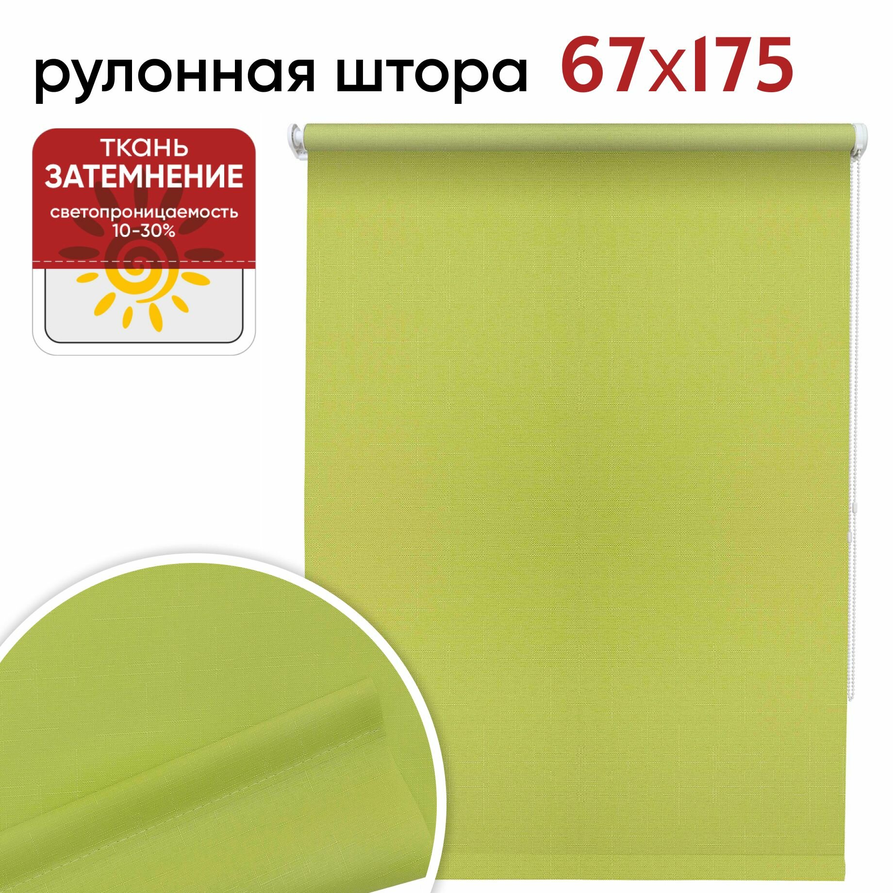 Рулонная штора УЮТ 070х175 см Шантунг салатовый - рулонные жалюзи, рольштора полиэстер, затемнение 70%