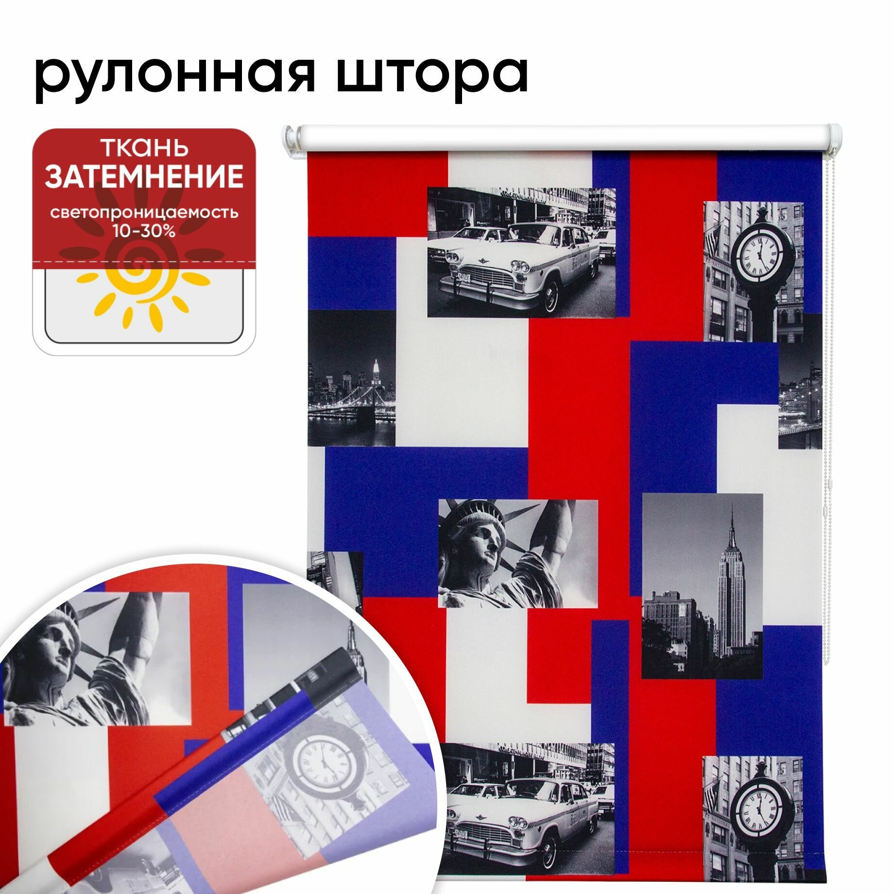 Рулонная штора УЮТ 60 см высота 175 см, Нью-Йорк пестрый, рольштора полиэстер, затемнение 70%