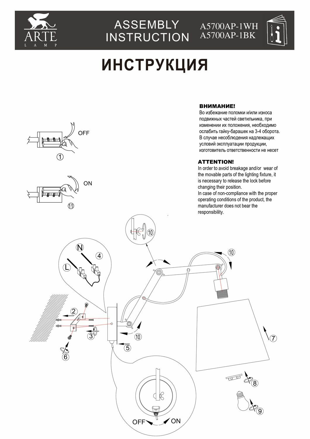 ARTE Lamp #ARTE LAMP A5700AP-1WH светильник настенный