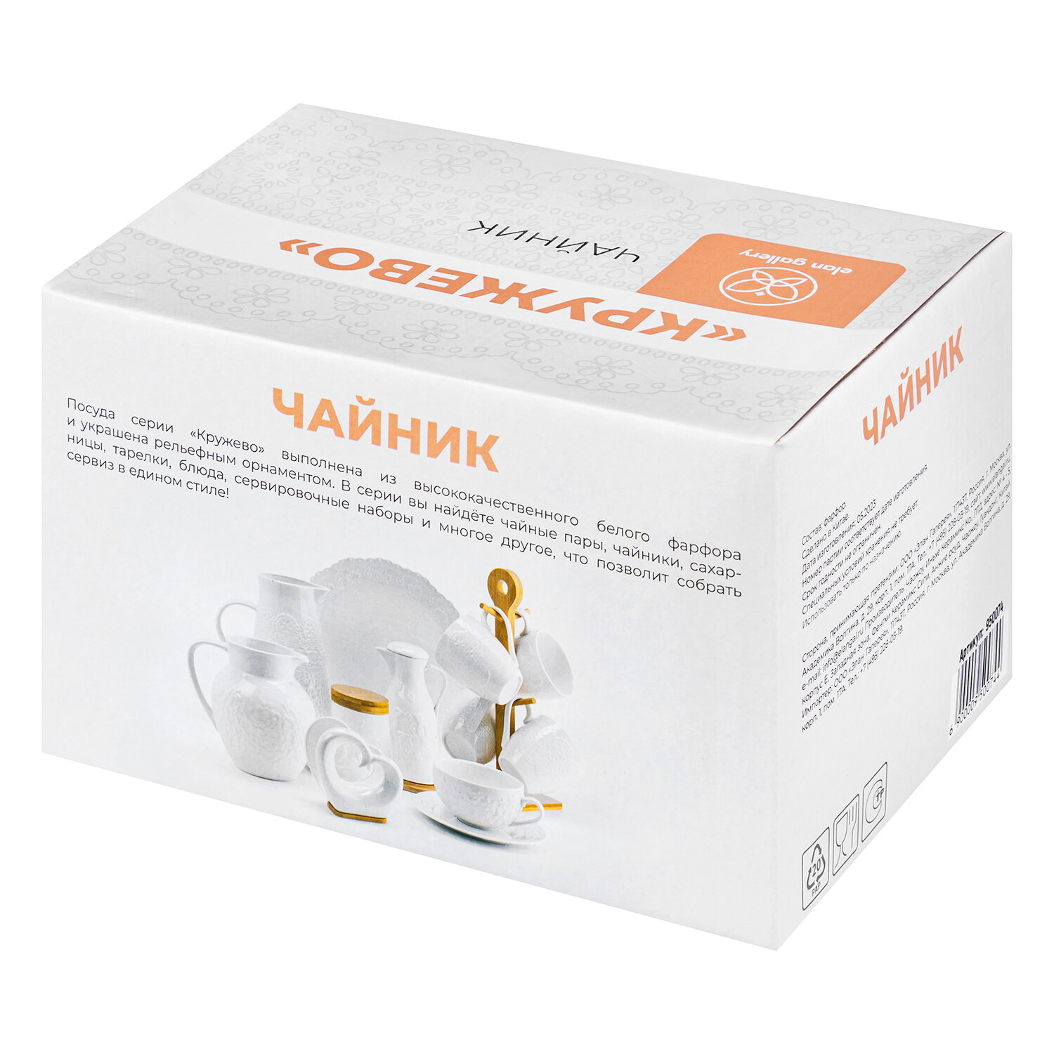 Чайник фарфор 1100 кружево белый элан