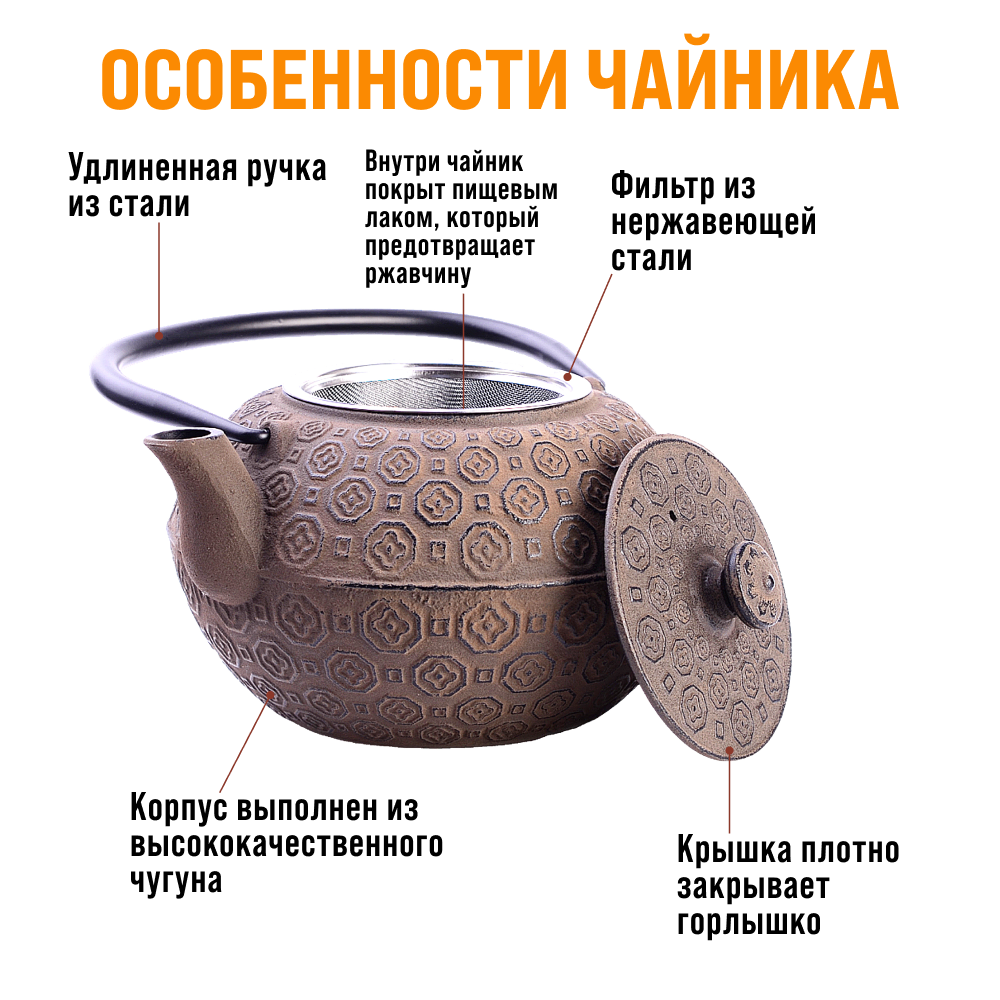 СохранитьЗаварочный чайник Mayer&Boch из чугуна с ситечком и крышкой, объем 1,18 литра 40529 интересное: