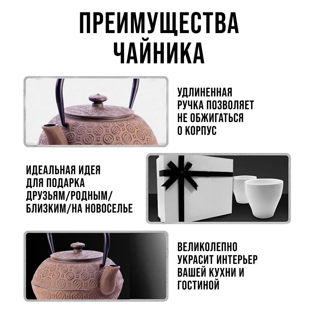 Чайник заварочный чугунный Mayer&Boch / Майер&Бош МВ23697 черный с фильтром 1.1л / посуда для чая