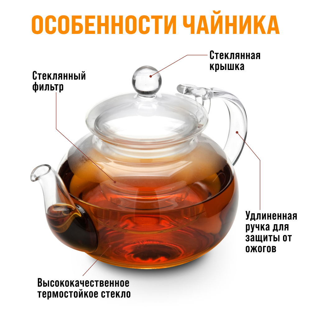 Чайник заварочный стекло 650мл с/кр МВ, 24939