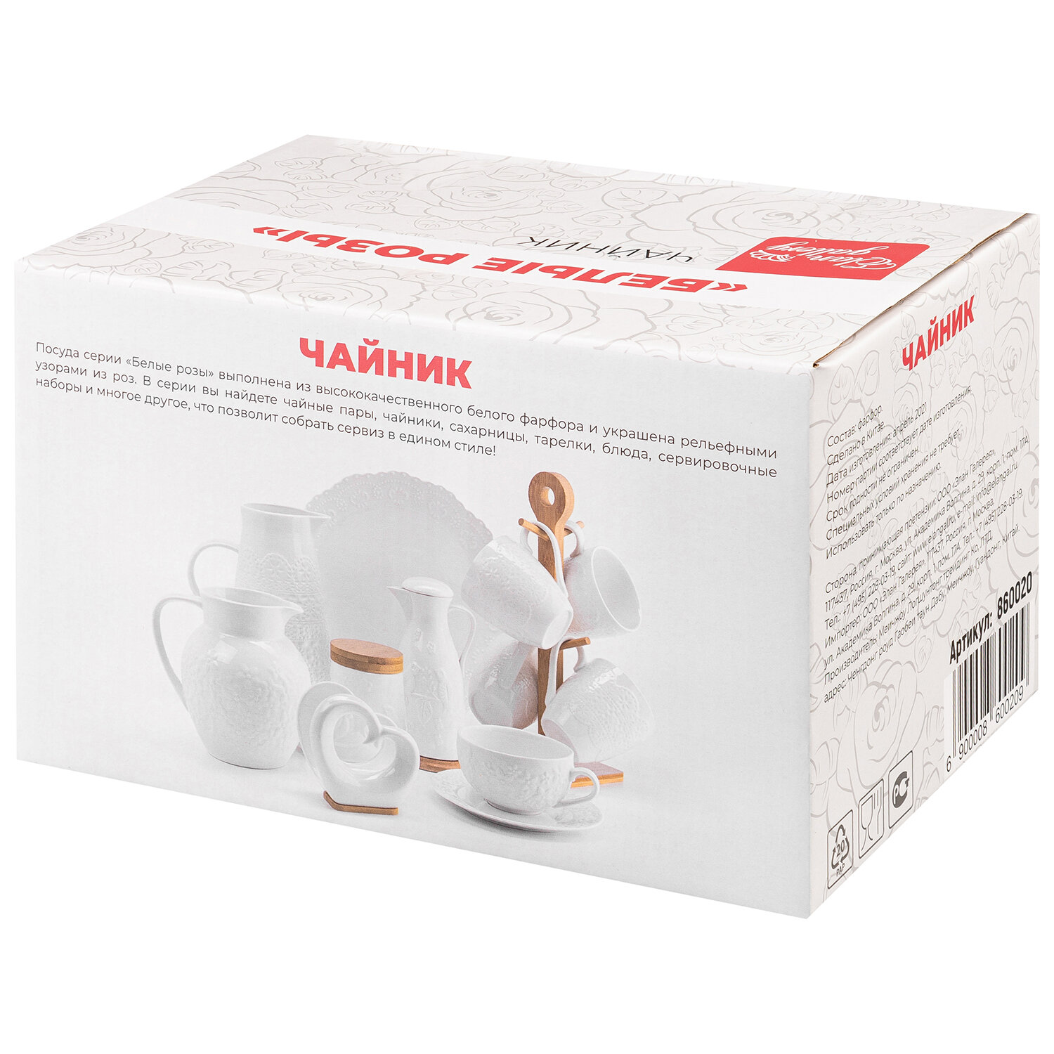 Чайник заварочный 1,1 л Elan Gallery "Белые розы", 24*14,5*15,5 см интересное: