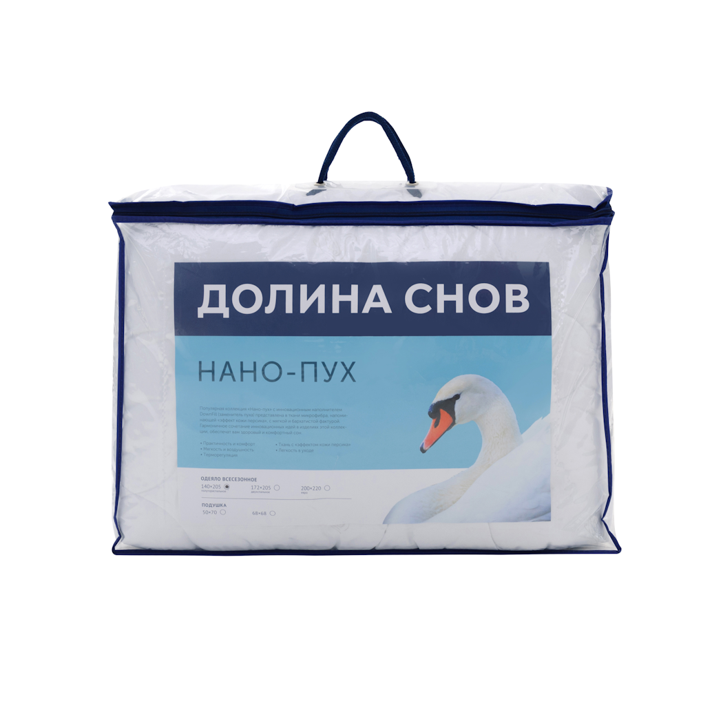 Одеяло лебяжий пух 1,5-спальное (140x205 см) Долина снов "нано-пух", чехол - микрофибра (100% п/э), Ecotex