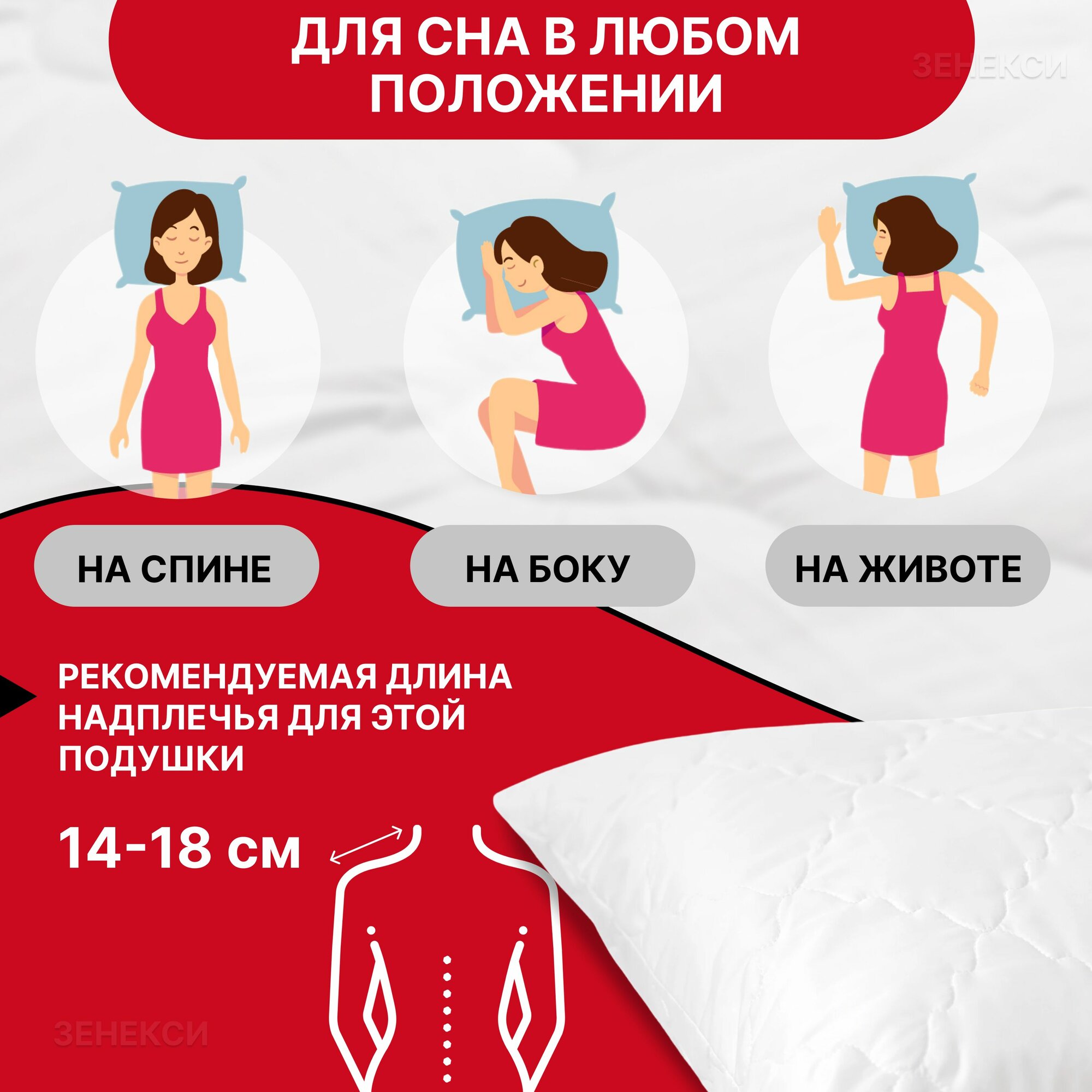 | Отзыв: | Мне подушка подошла, супер просто я в восторге! Хорошо поддерживает голову ни куда не проваливается. Высота плеча у меня 14см а подушки 16 см мне идеально подошло.
