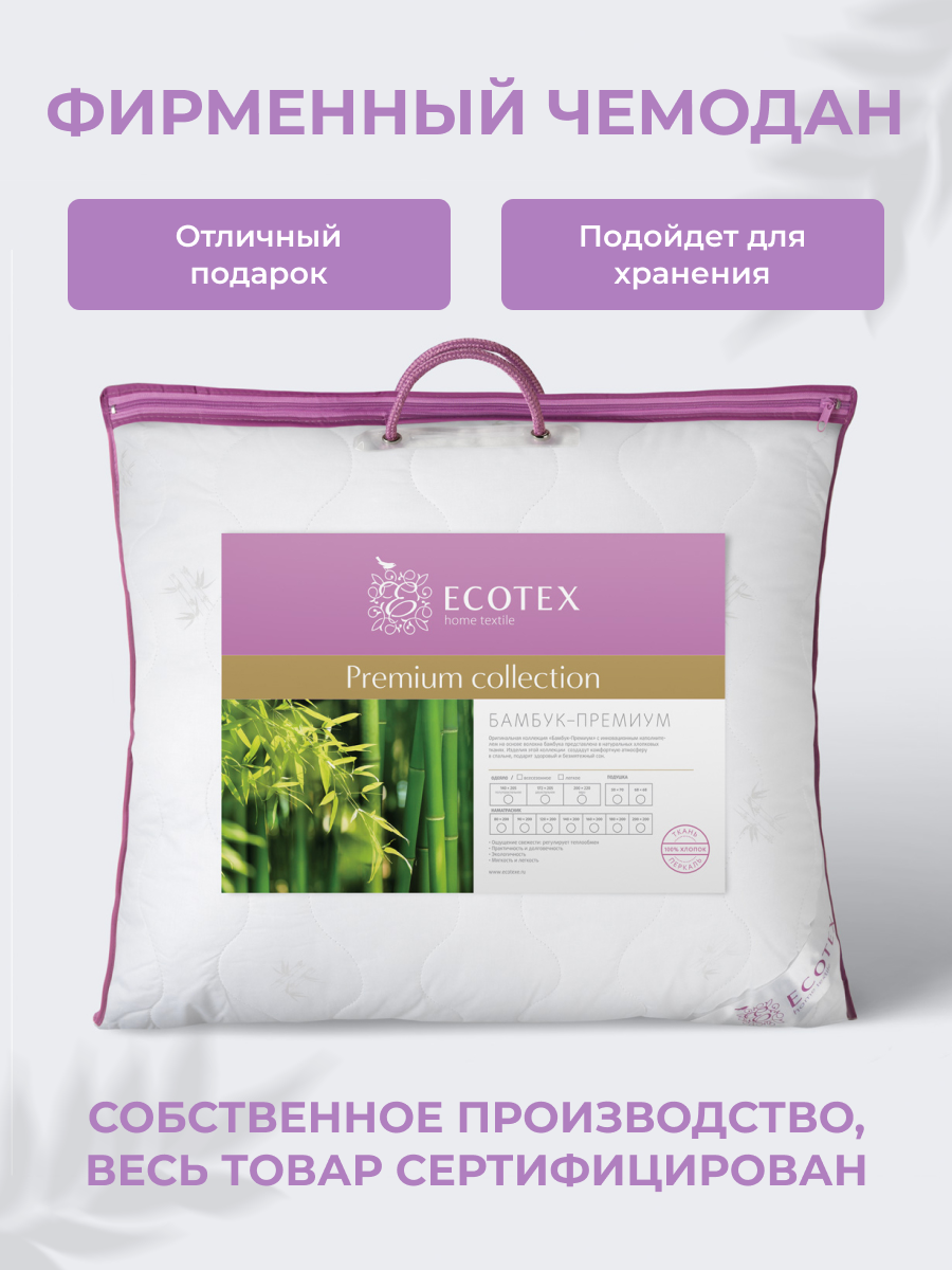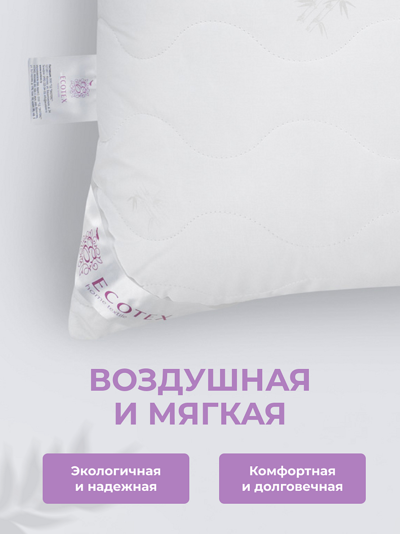 Подушка 70х70 "Бамбук Премиум", чехол - 100% хлопок (перкаль), Ecotex интересное: