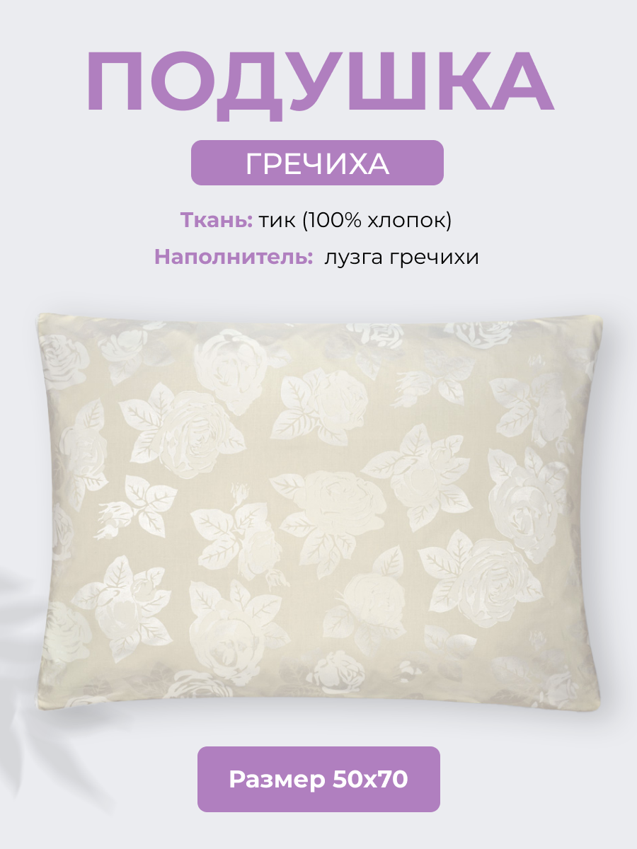 СохранитьПодушка для сна 50x70 см "Гречиха", наполнитель - лузга гречихи, чехол - тик (100% хлопок), цвет - бежевый, Ecotex интересное:
