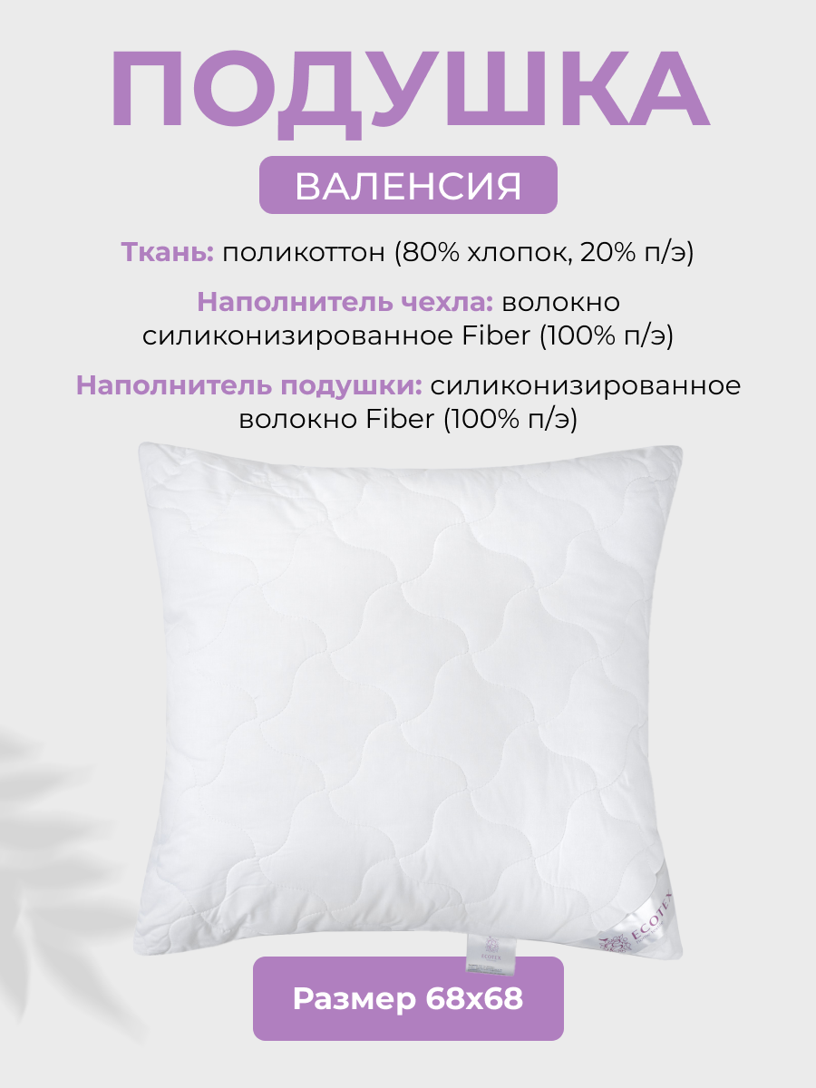 Купить Подушка 68x68 см "Валенсия", чехол - поликоттон (80% хлопок, 20% п/э), Ecotex