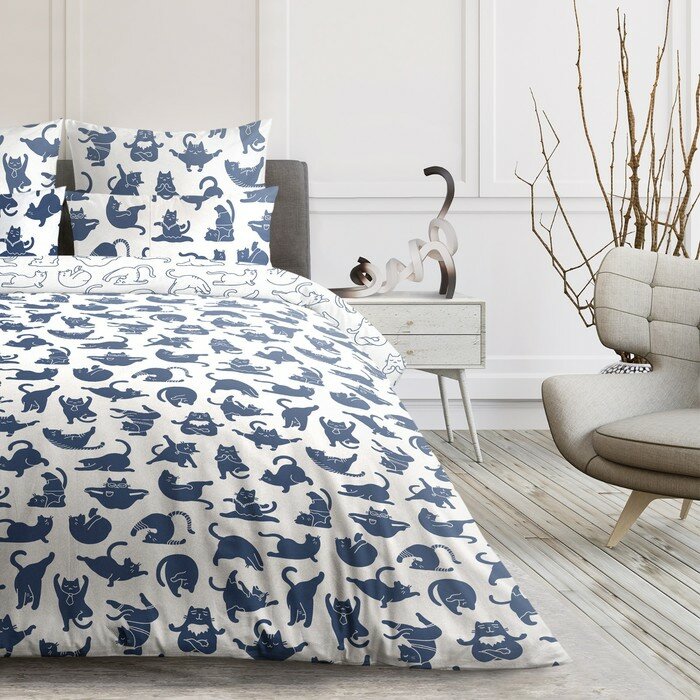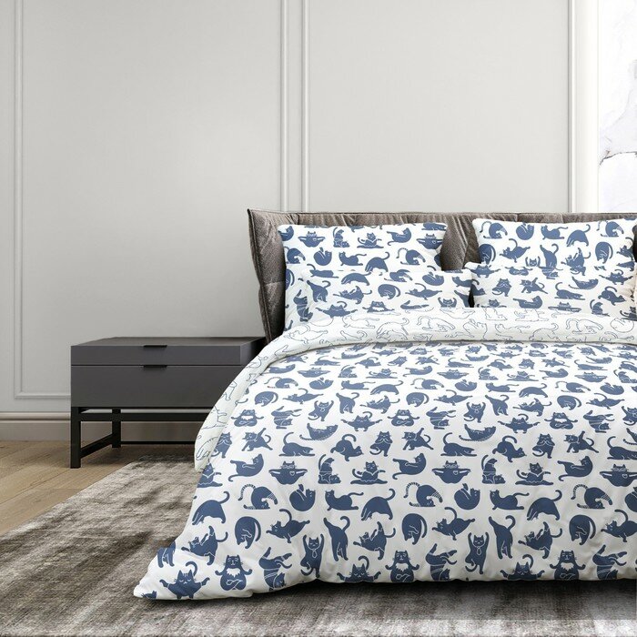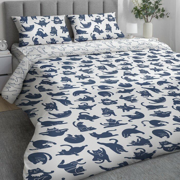 Двуспальный комплект постельного белья Волшебная Ночь Ранфорс Yoga cat с наволочками 50х70, 790522
