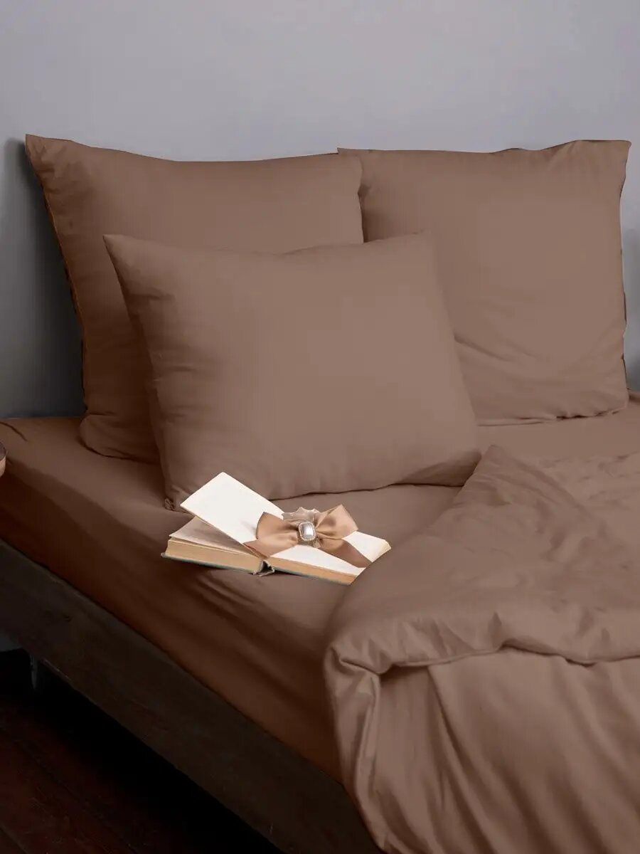Пододеяльник 2 спальный KUPU-KUPU трикотажный на молнии 172х205 см, мокко