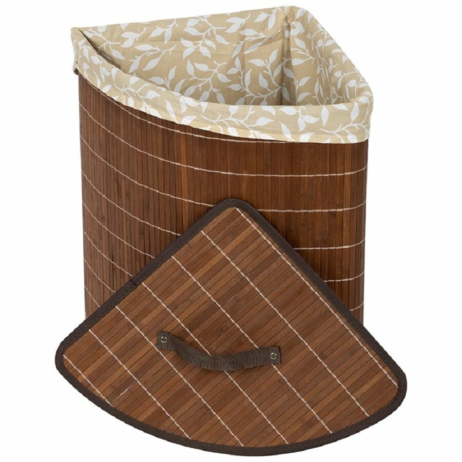 Корзина для белья угловая Рыжий кот BLB-07-D, 35 x 35 x 50 см, бамбук темный