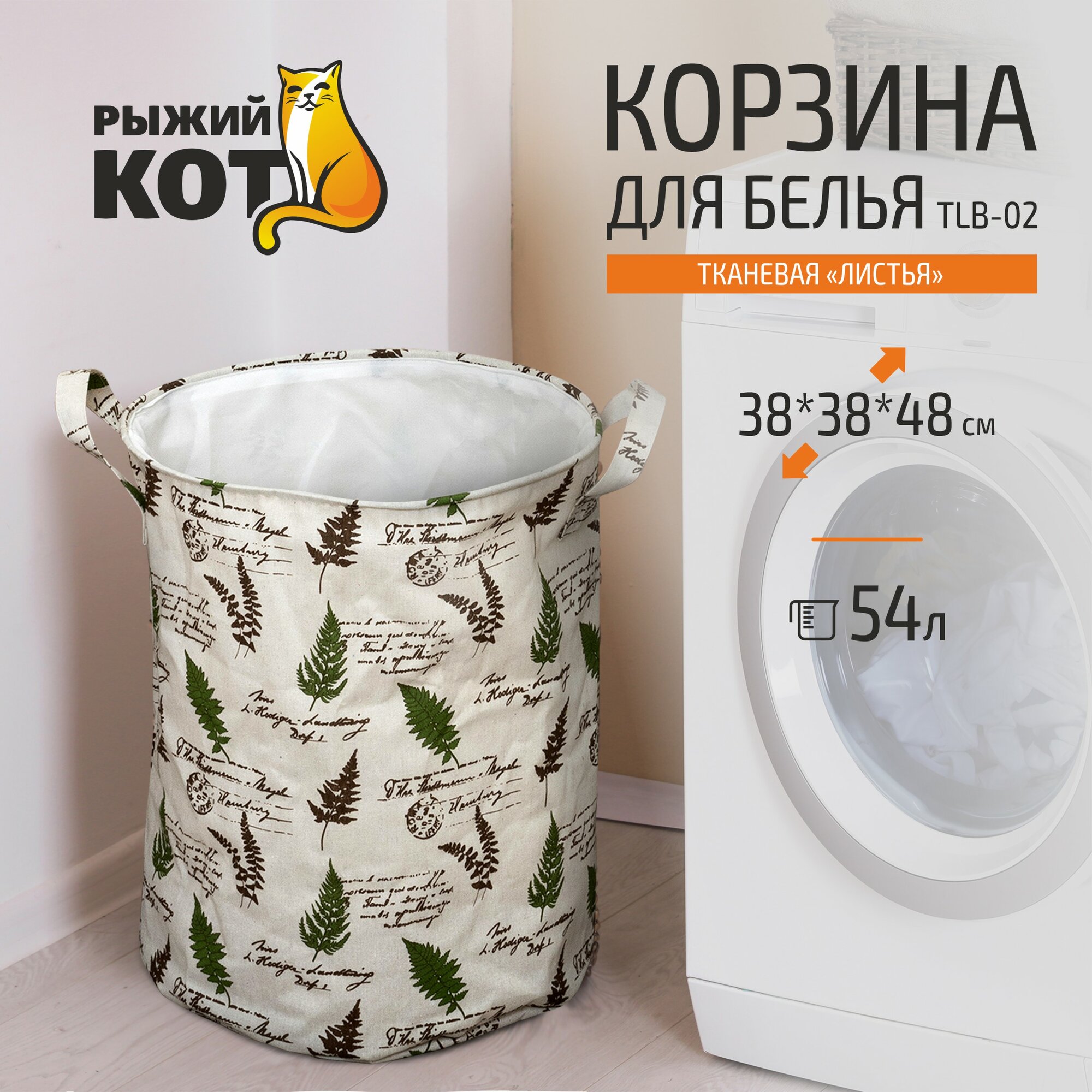 Корзина для белья Рыжий кот TLB-02, тканевая, 54 л 38 x 48 см, листья