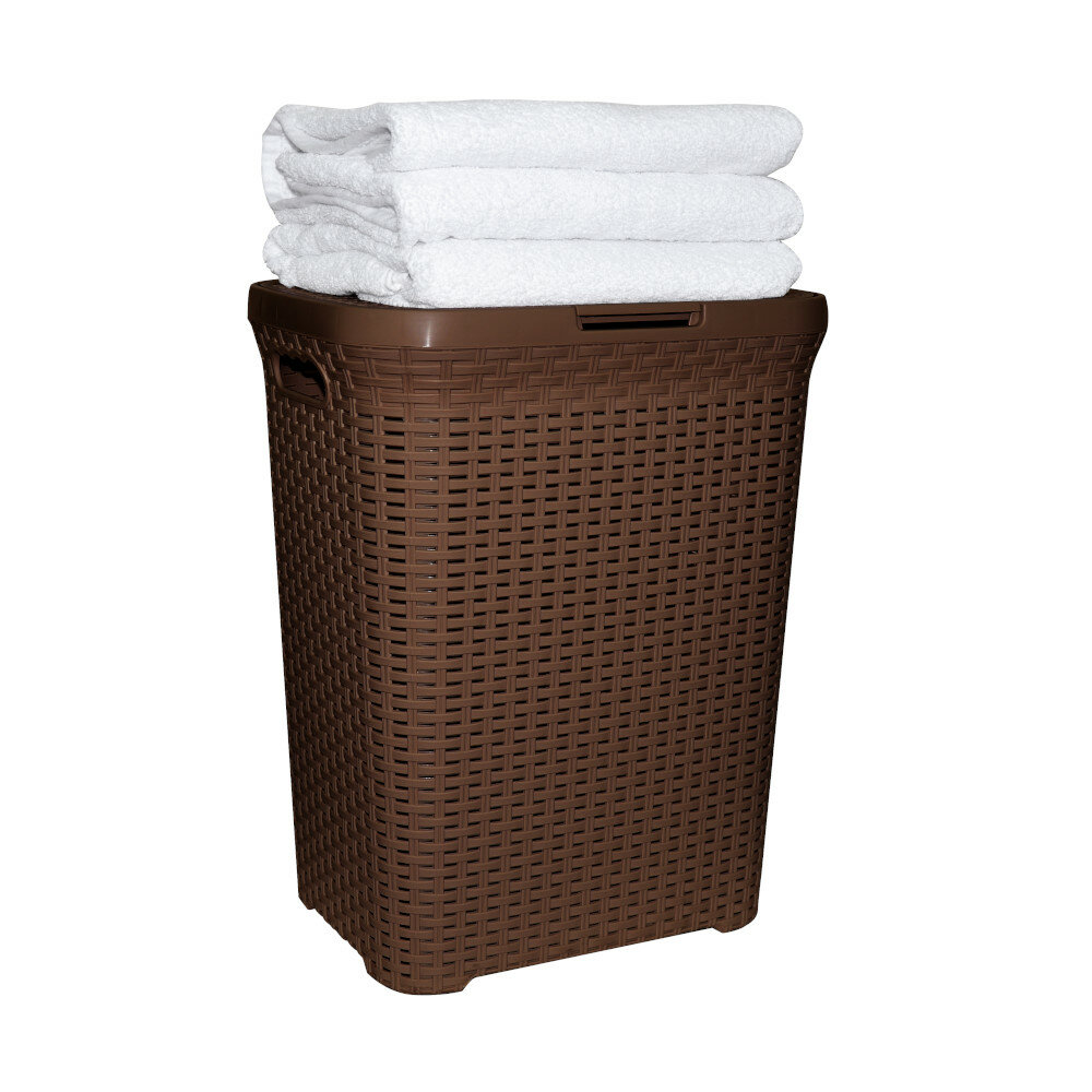 Купить Корзина для белья, 40 л, 30х38х48 см, прямоугольная, плетеная, пластик, коричневая, с крышкой, Violet, Ротанг, 184001