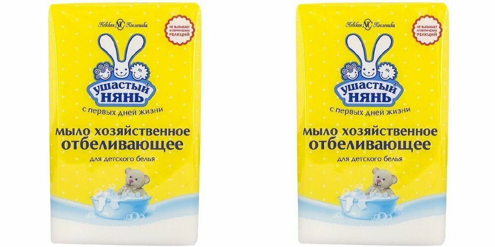 Купить Ушастый Нянь Хозяйственное мыло отбеливающее без отдушки, 0.18 кг - 2 шт