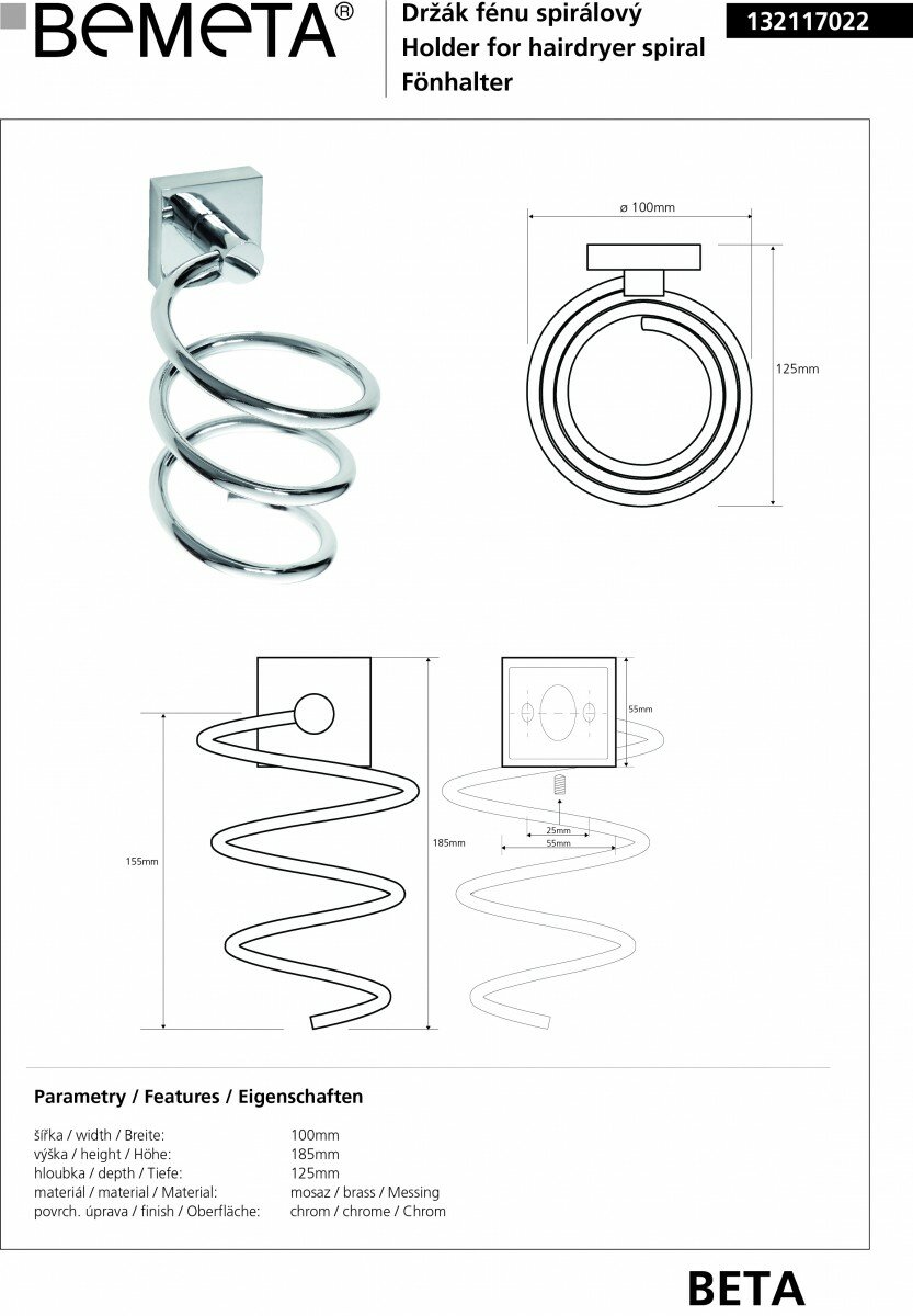 Держатель фена спиралевидный Bemeta BETA 132117022