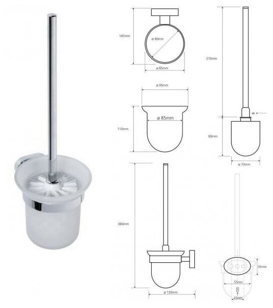 Ёршик для унитаза подвесной Bemeta Oval 118413011 95х360х130мм хром