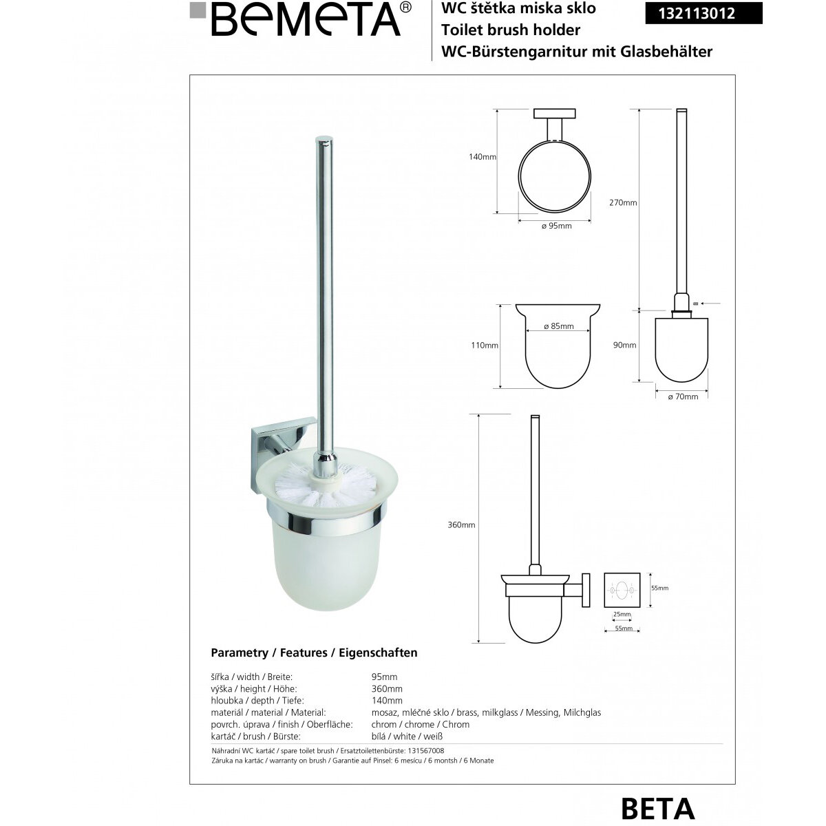 Купить Ершик подвесной Bemeta Beta стекло щётка белая (132113012)