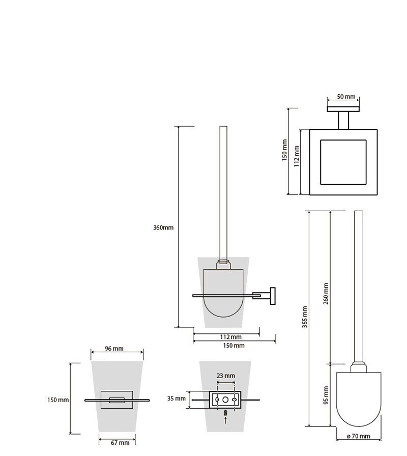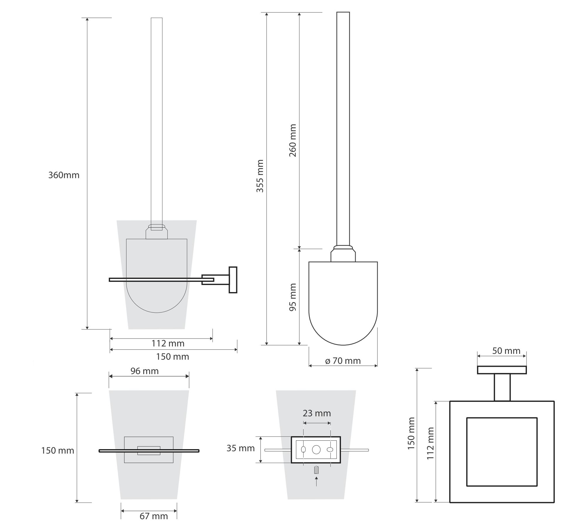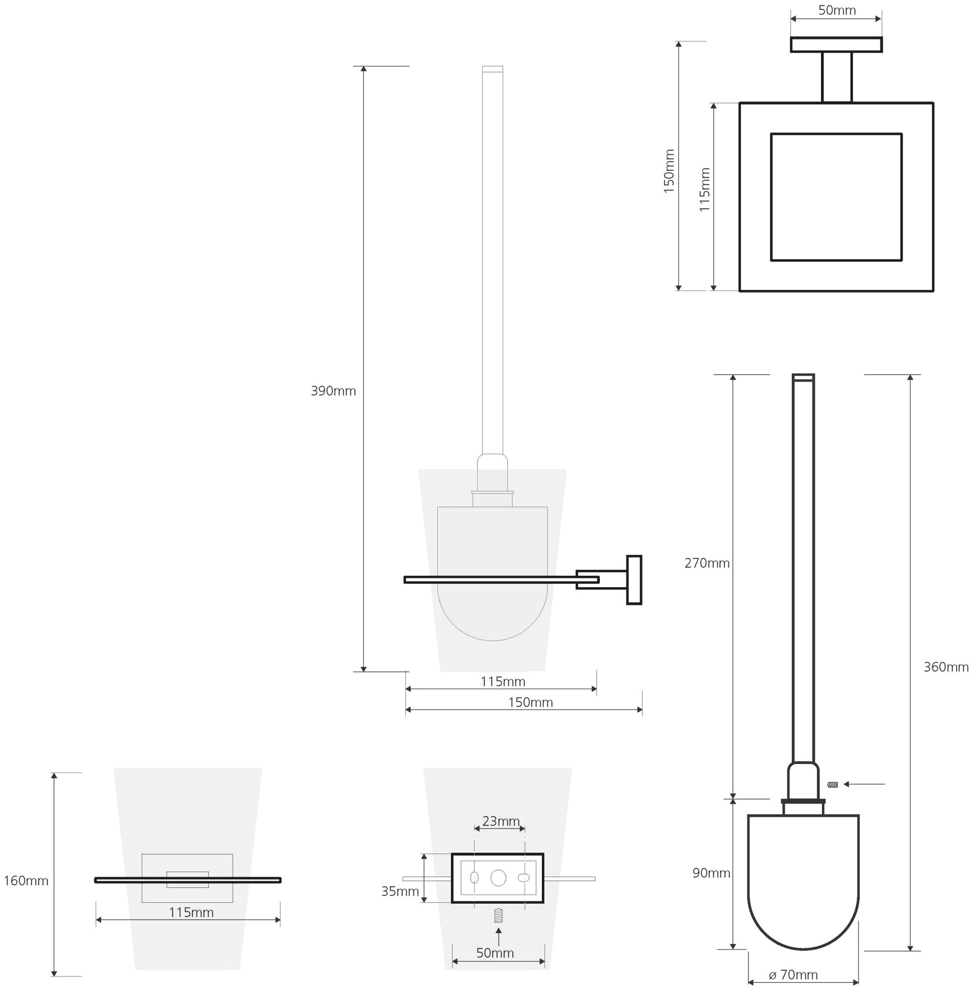 Ёрш настенный из нержавеющей стали, черный , GFmark