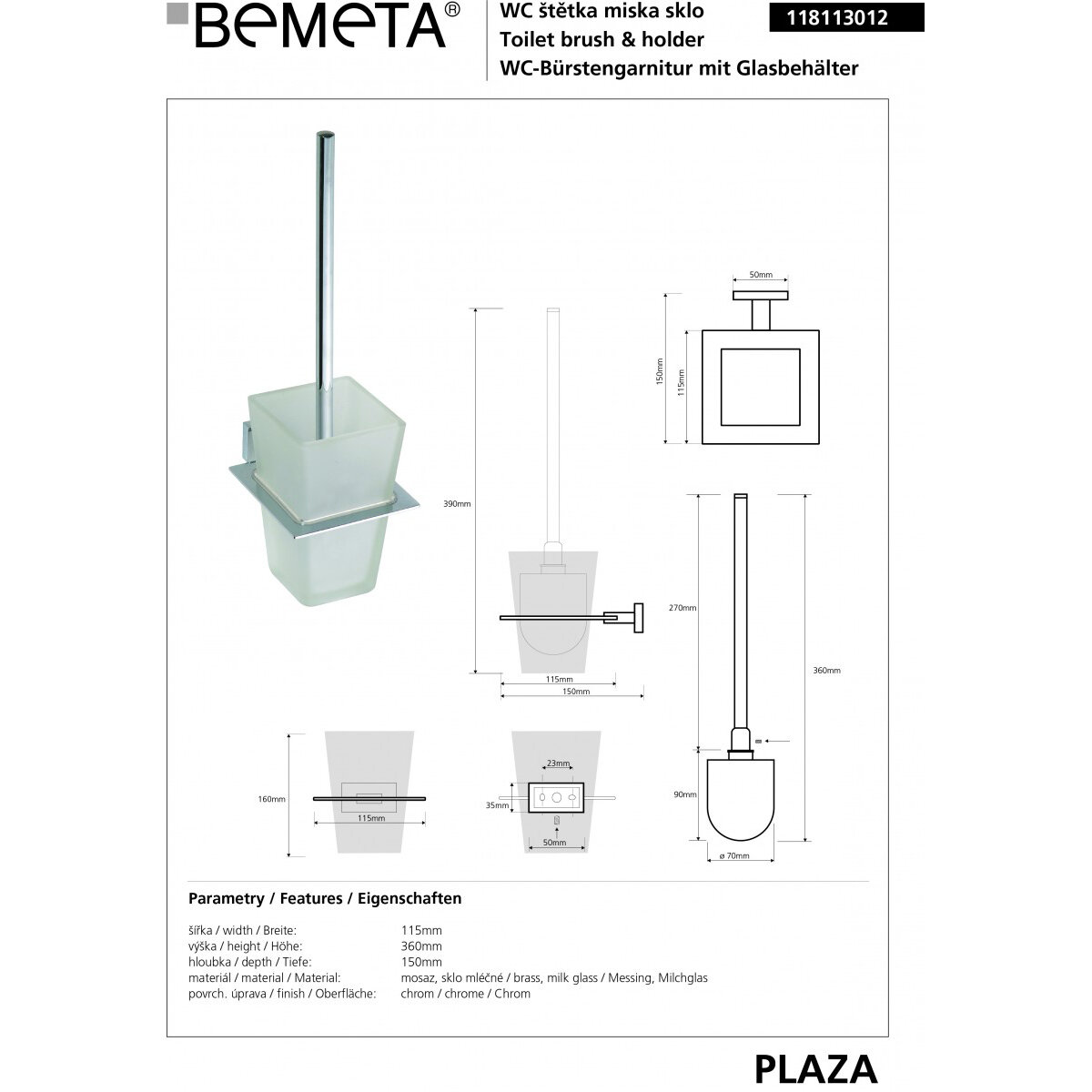 Ёршик для унитаза Bemeta Plaza, подвесной, хром 118113012