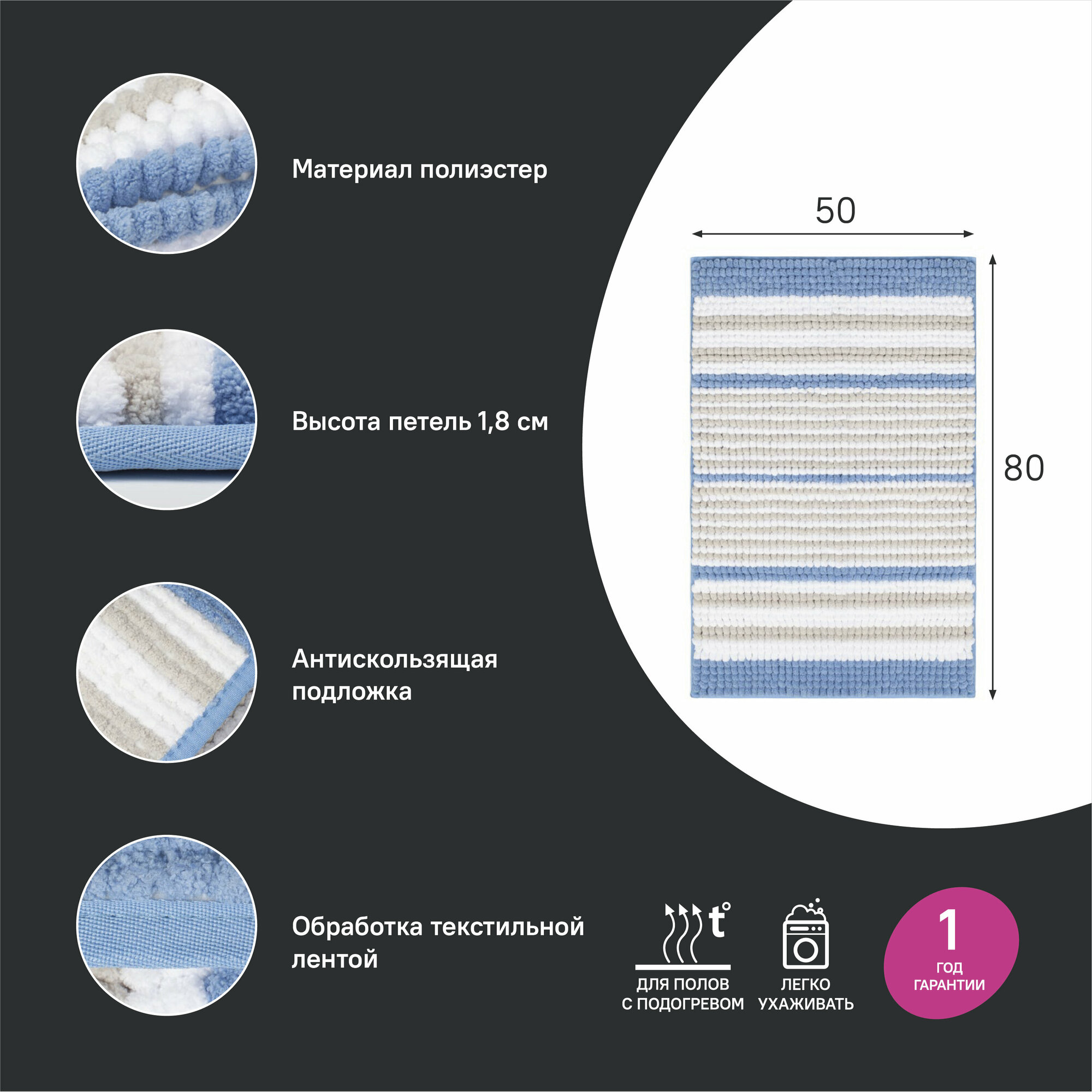 Купить Коврик для ванной комнаты 50x80 шенилл голубой IDDIS BC05P58i12