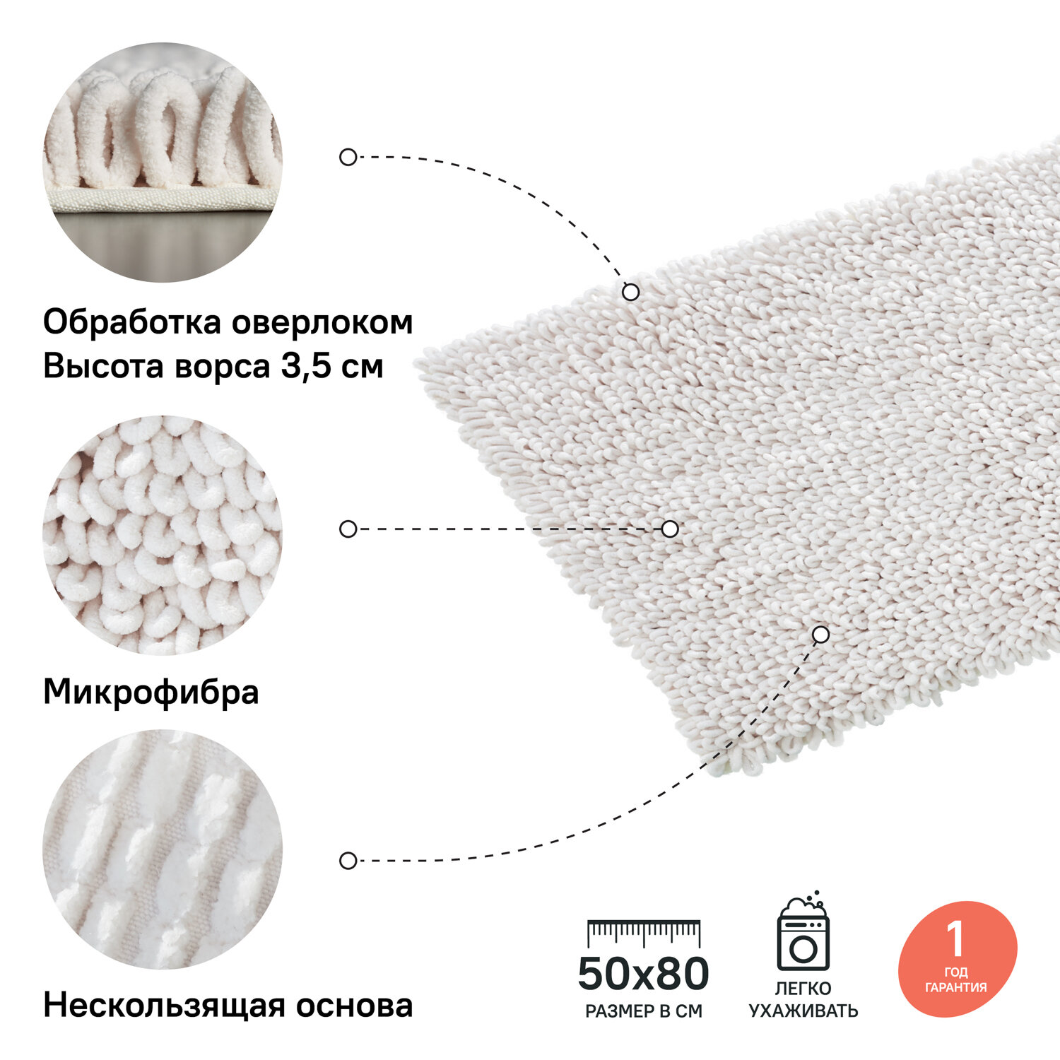 Коврик для ванной комнаты, 50*80 см, микрофибра, IDDIS, D21M580i12