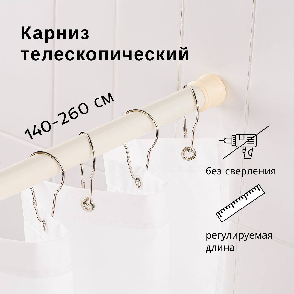 Карниз для ванной Verran 140-260 см телескопический бежевый