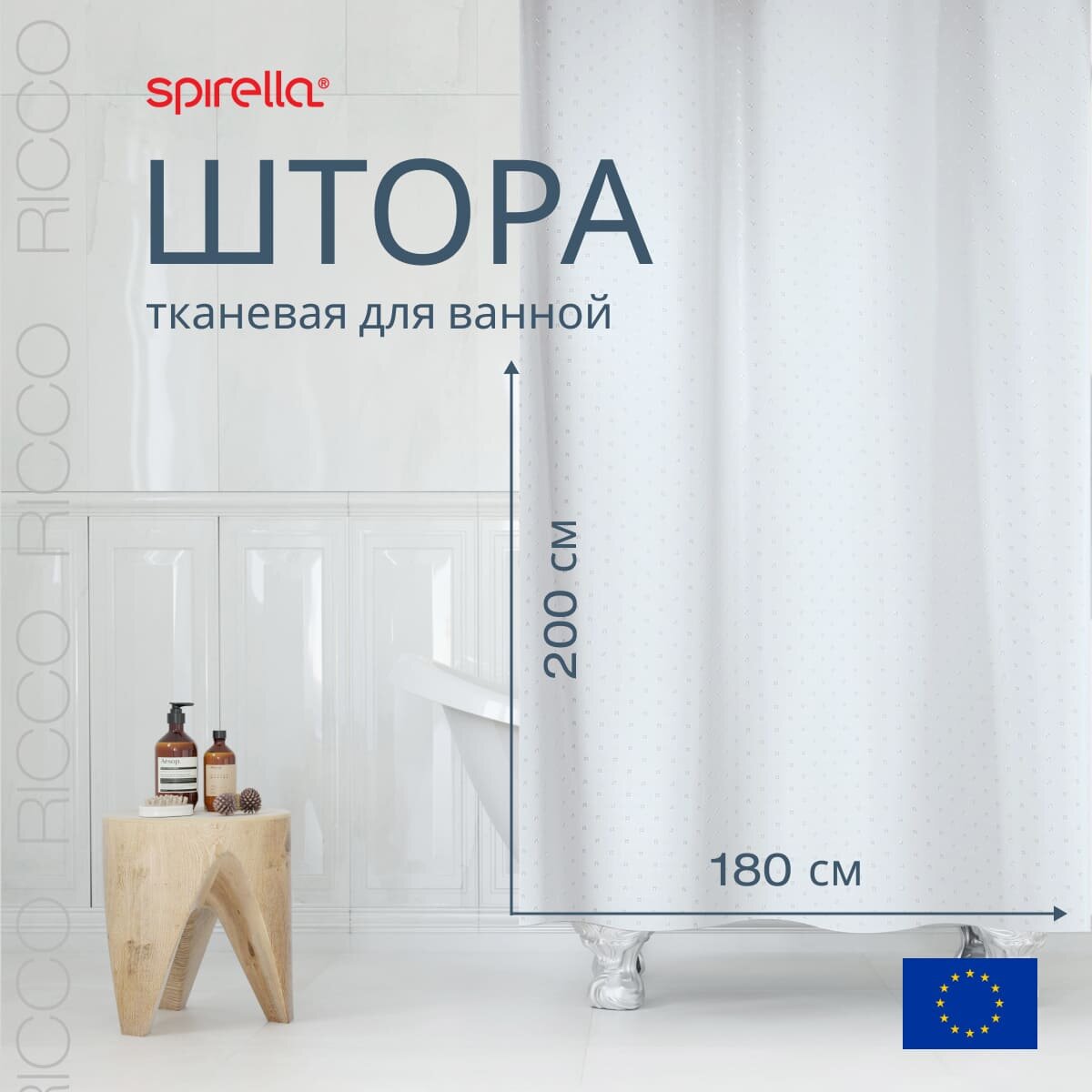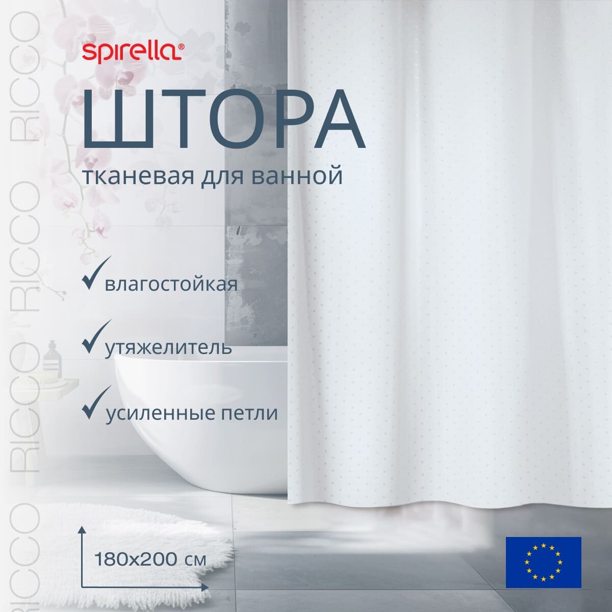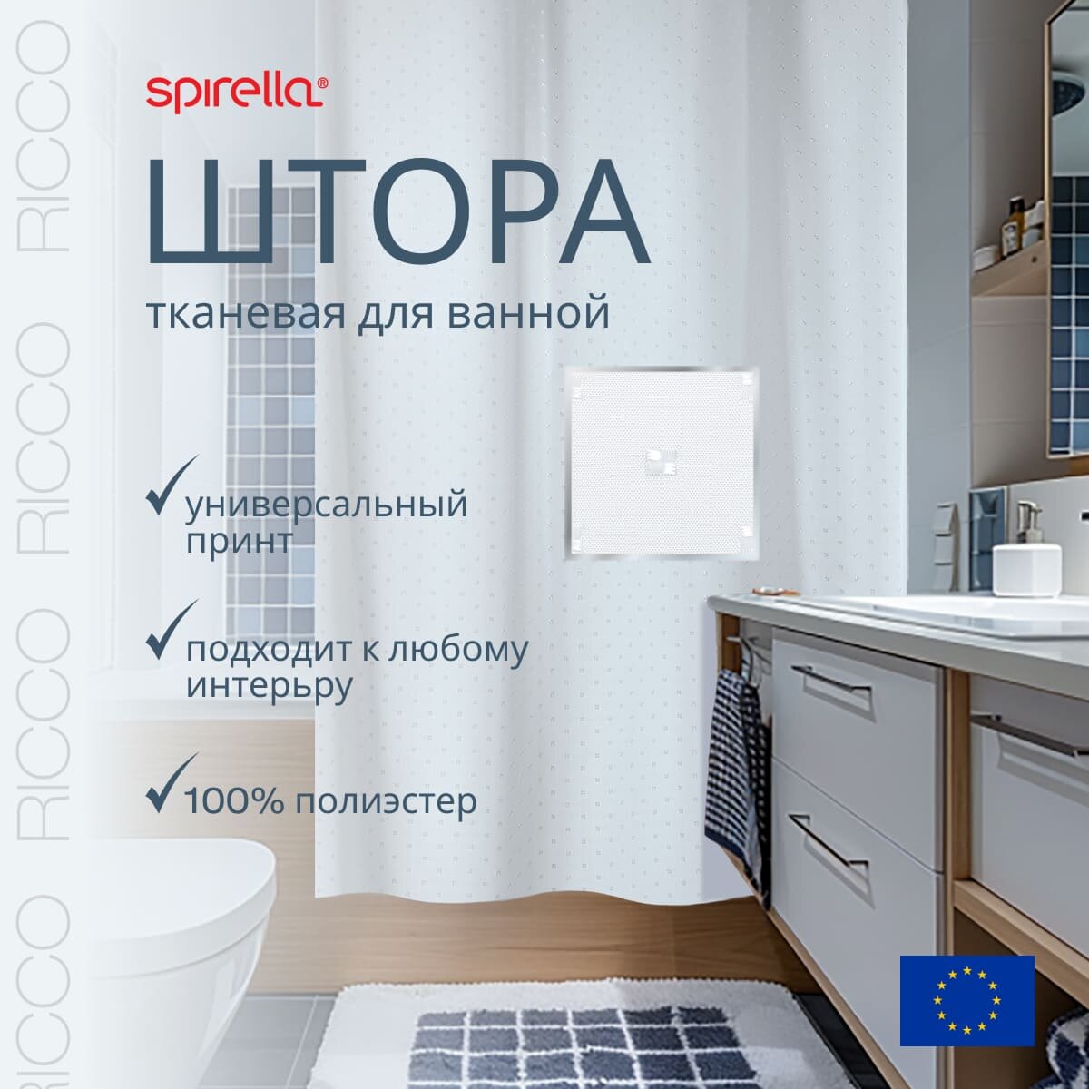 Штора для ванной Spirella Ricco, 180x200см, текстиль, белый 1043814
