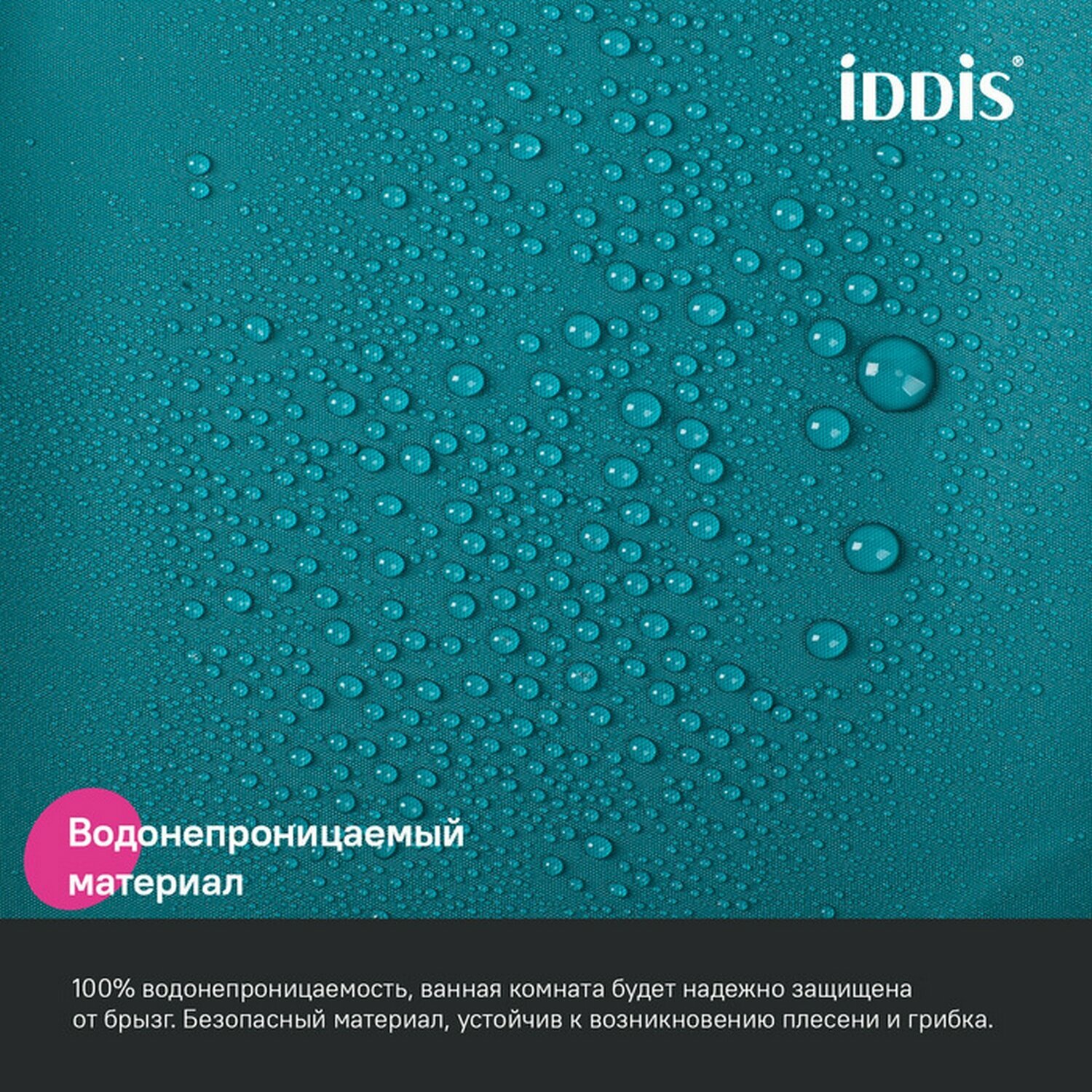 Штора для ванной комнаты и душа IDDIS Base BP03P18i11 180x200 см, тканевая, водонепроницаемая, полиэстер, с кольцами
