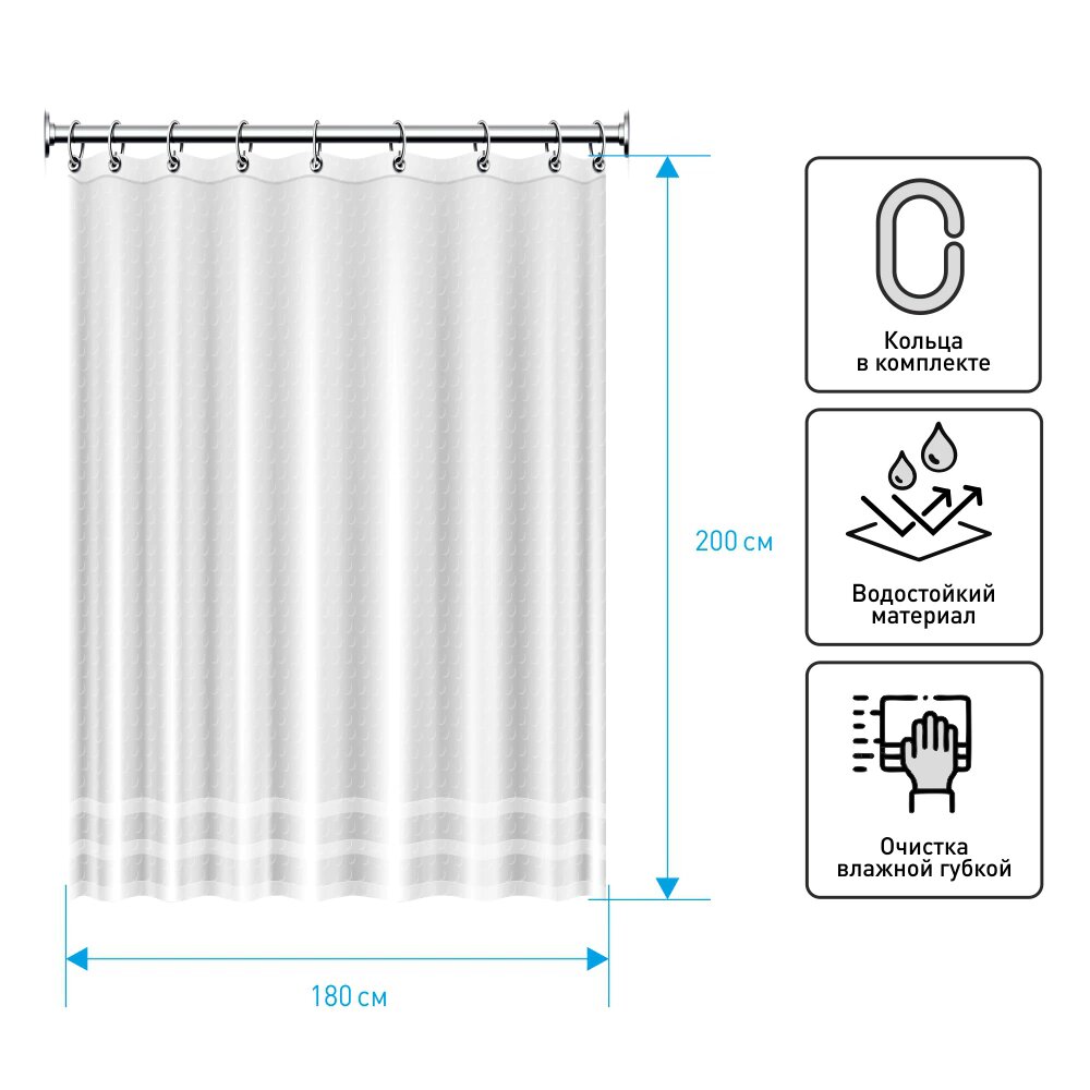 Штора для ванной комнаты и душа IDDIS Base BP03P18i11 180x200 см, тканевая, водонепроницаемая, полиэстер, с кольцами