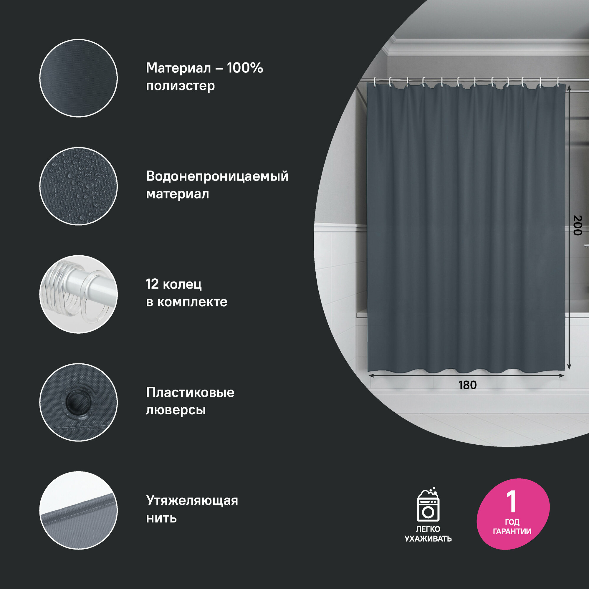 Штора для ванной комнаты и душа IDDIS Base BP01P18i11 180x200 см, тканевая, водонепроницаемая, полиэстер, с кольцами