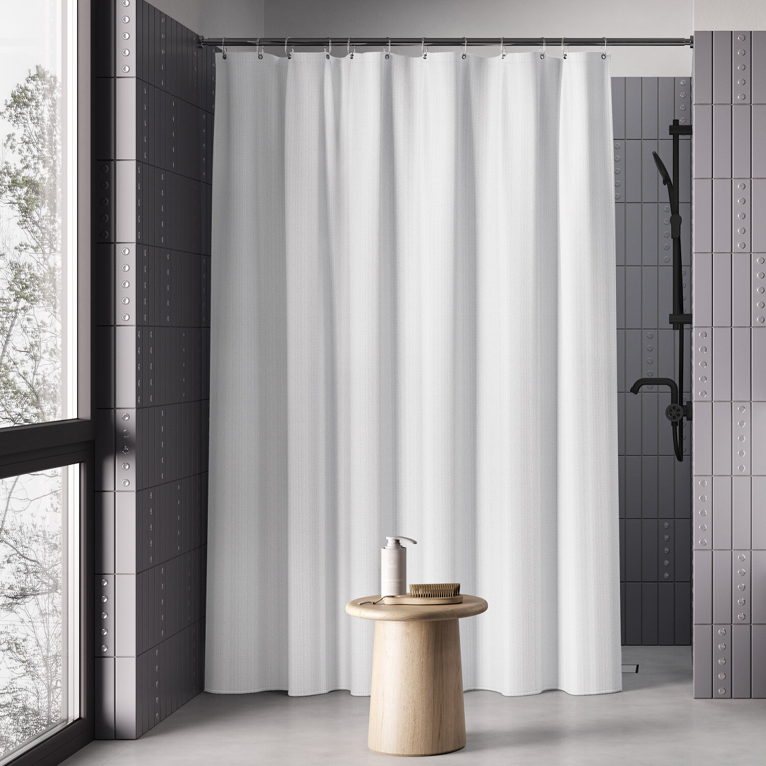 Штора для ванной комнаты и душа IDDIS Base BF01P18i11 180x200 см, тканевая, водонепроницаемая, полиэстер, с кольцами