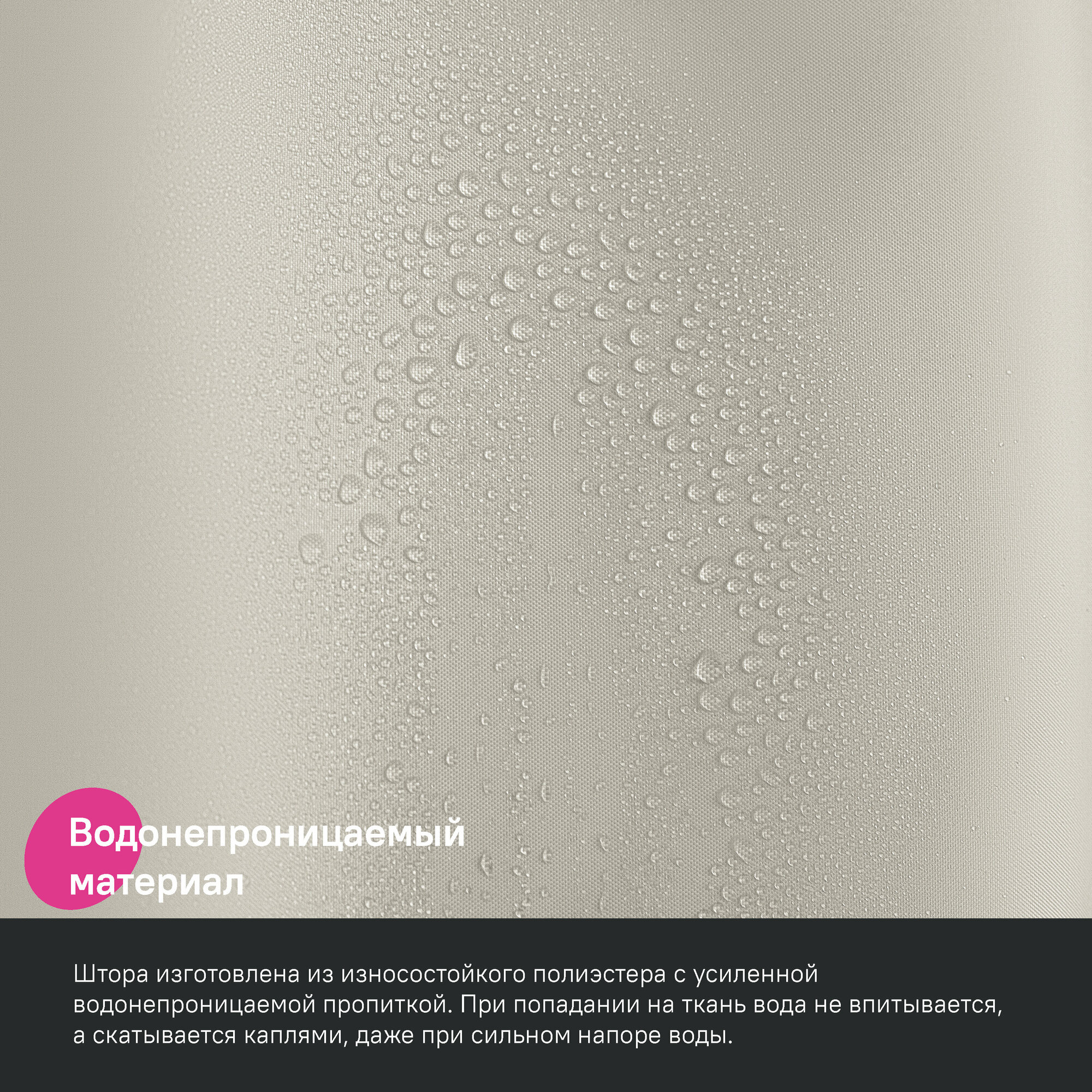 Штора для ванной комнаты и душа IDDIS Base BF01P18i11 180x200 см, тканевая, водонепроницаемая, полиэстер, с кольцами