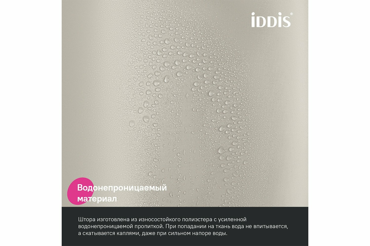 Штора для ванной комнаты и душа IDDIS Base BP02P18i11 180x200 см, тканевая, водонепроницаемая, полиэстер, с кольцами
