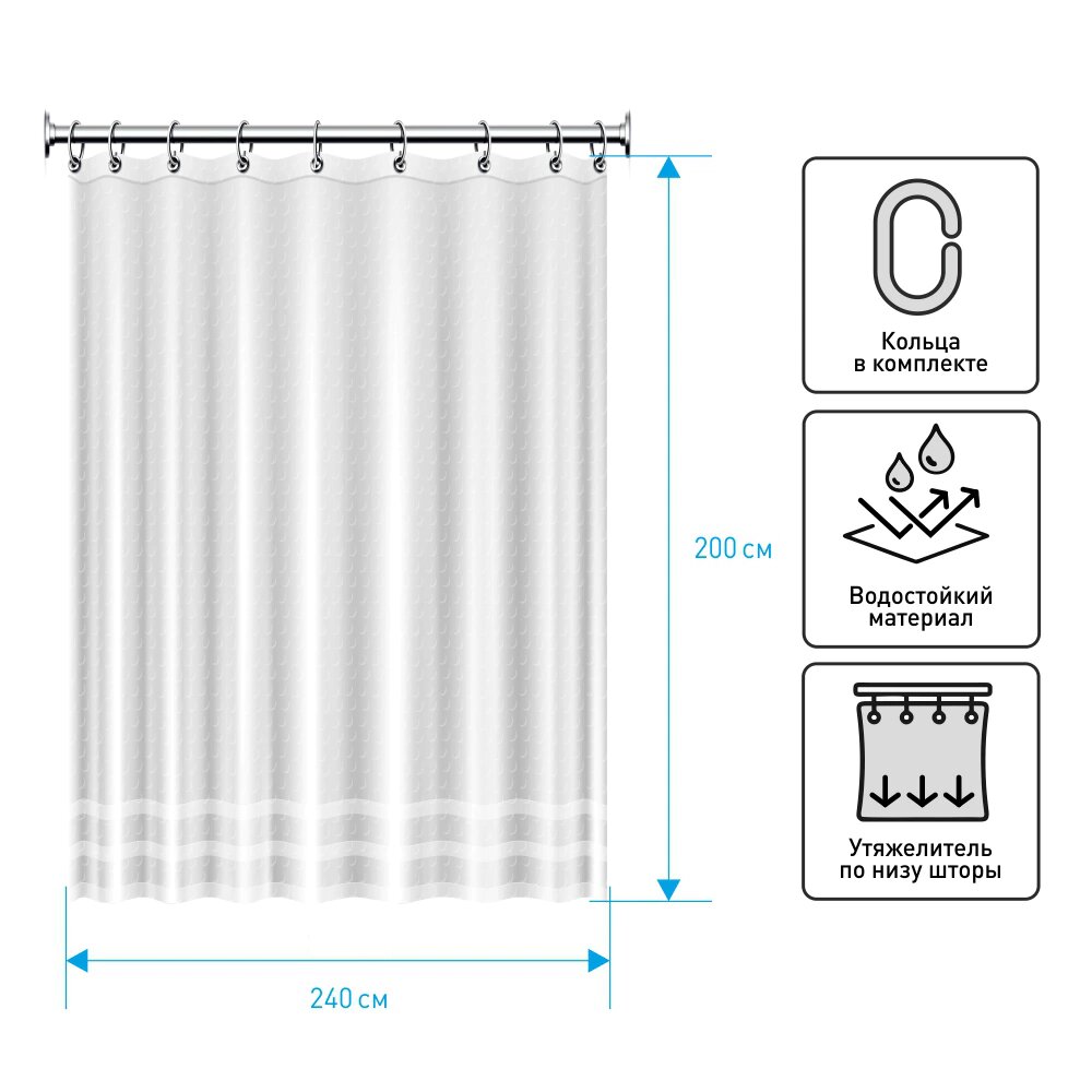 Штора для ванны IDDIS Promo P02PE18I11 180x200 белая с кольцами