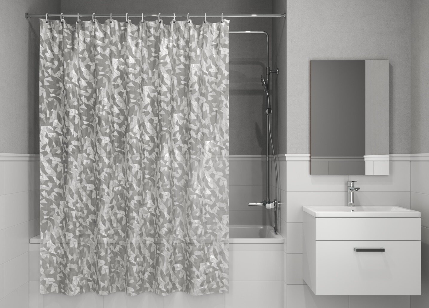 Штора для ванной комнаты и душа IDDIS Base BS01P18i11 водоотталкивающая, из полиэстера, серая, с люверсами, с кольцами