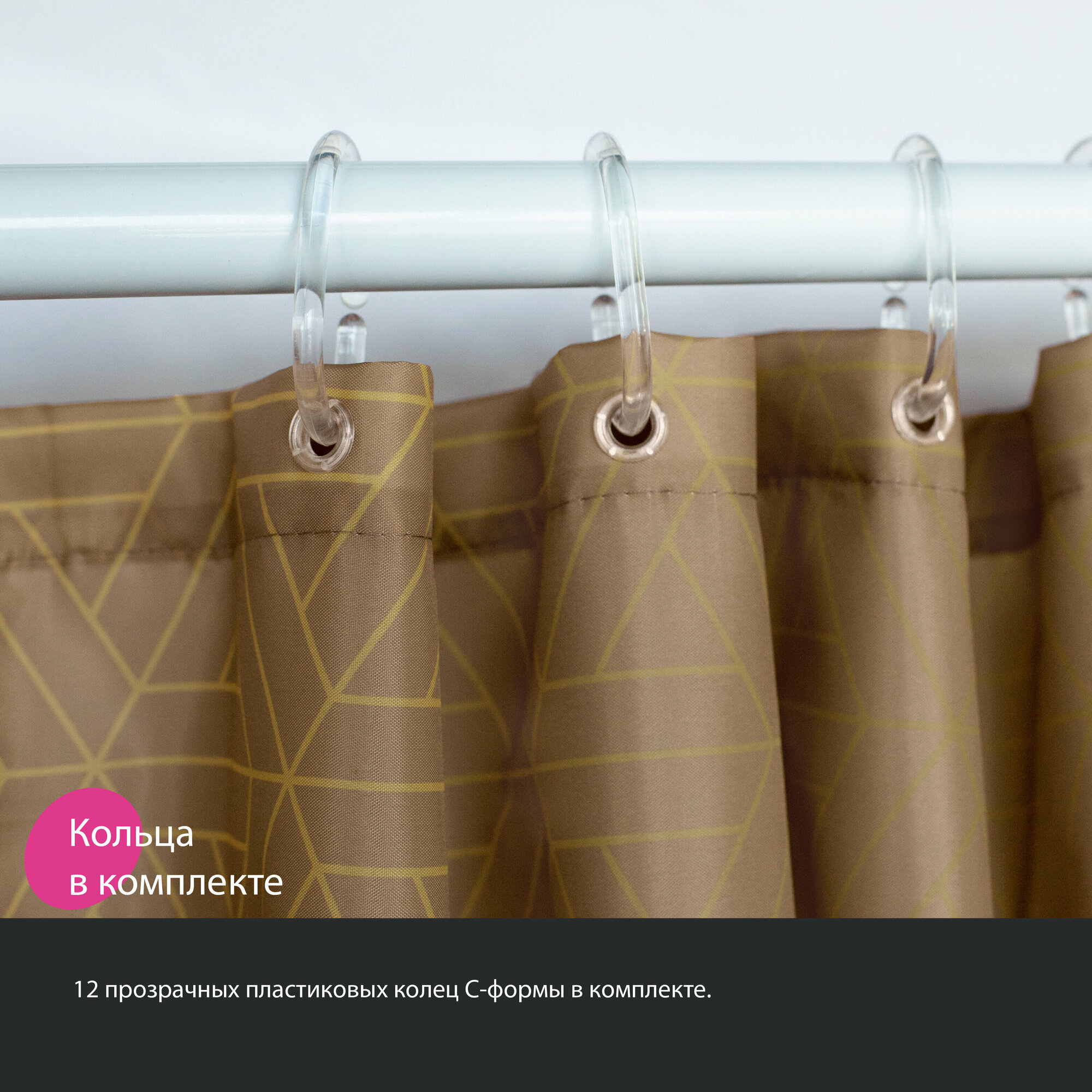 Штора для ванной комнаты и душа IDDIS Base BR03P18i11 180x200 см, тканевая, водонепроницаемая, полиэстер, с кольцами
