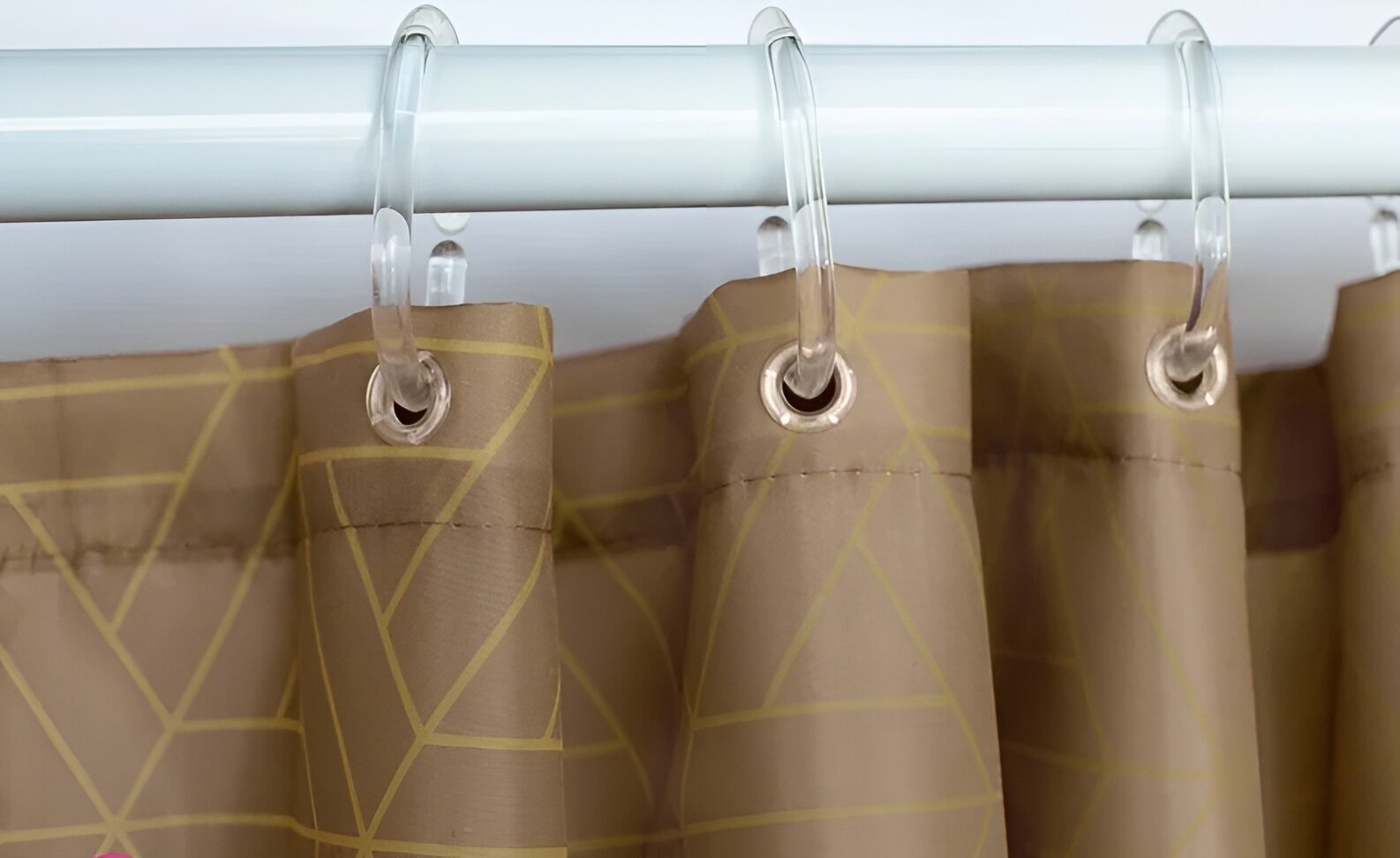 | Минусы: | Не все кольца подходят, т.к. диаметр трубки больше обычного. Если использовать металлические кольца для шторки, то при движении шторки издаётся громкий, неприятный, шуршащий звук металла об металл. |