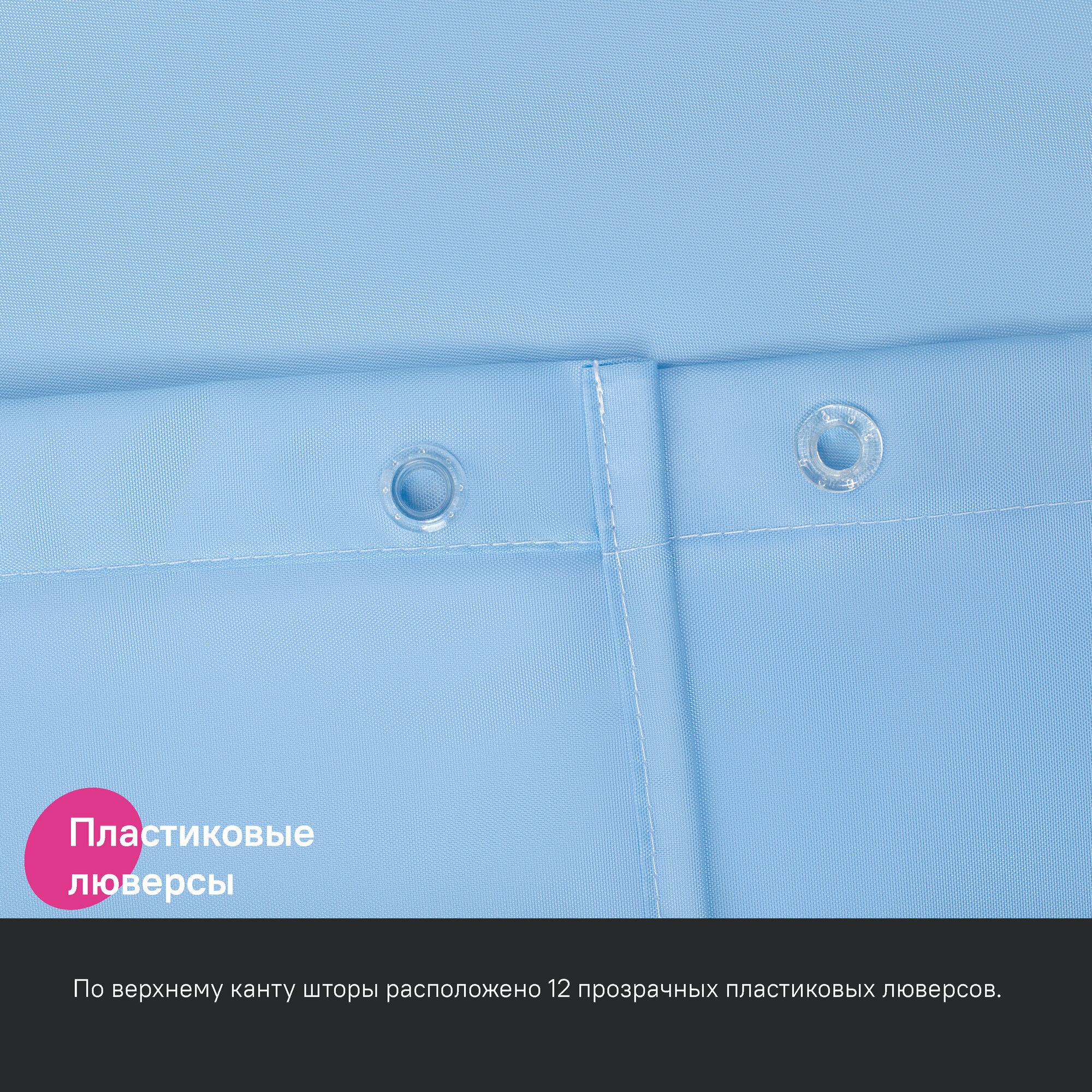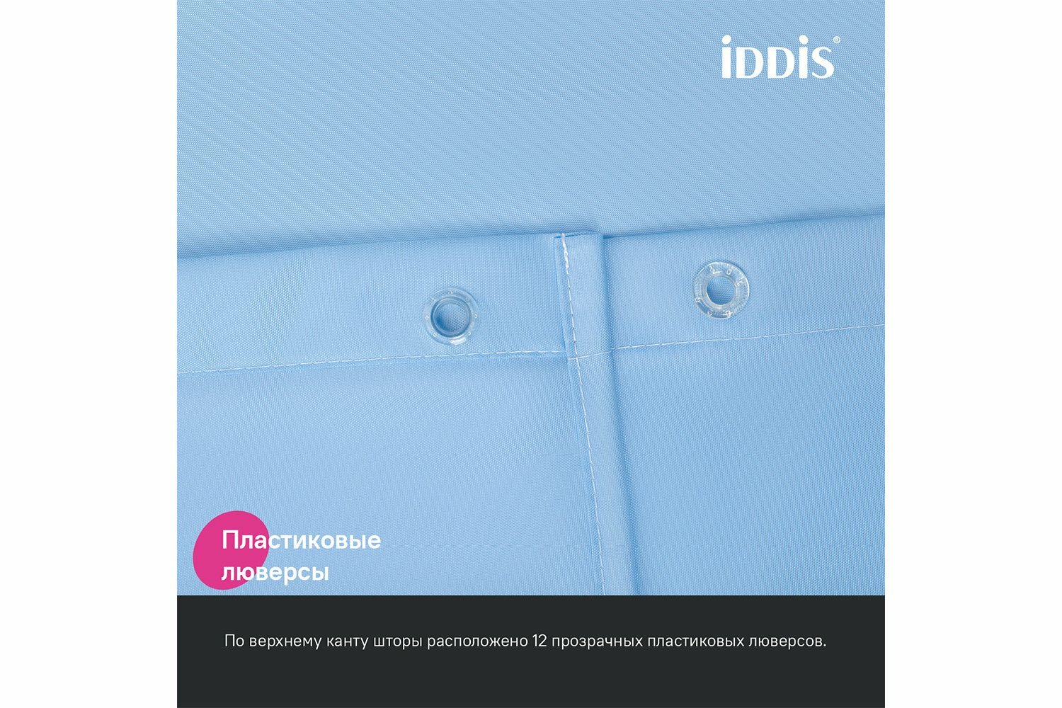 Штора для ванной комнаты и душа IDDIS Base BR01P18i11 180x200 см, тканевая, водонепроницаемая, полиэстер, с кольцами, голубая