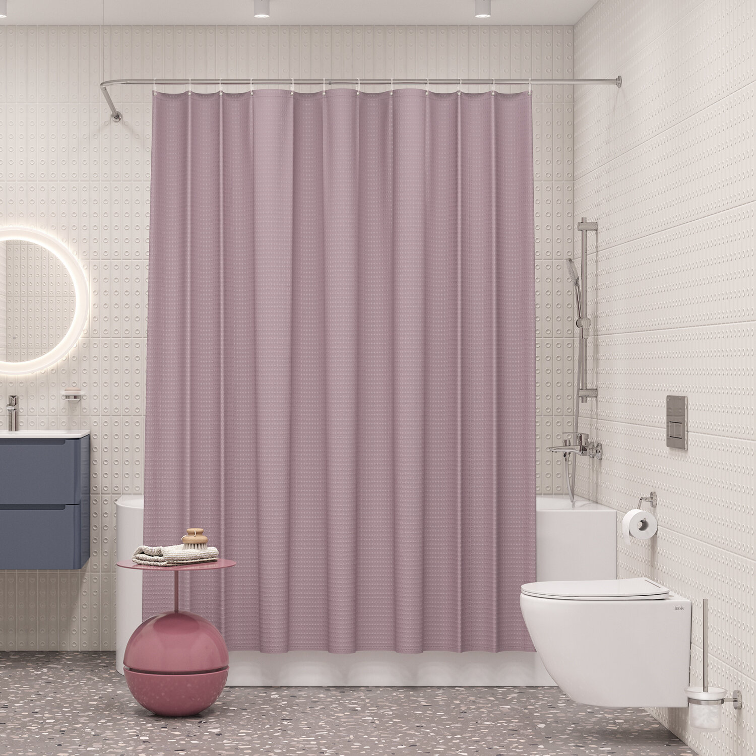 Штора для ванной комнаты и душа IDDIS Base BP02P18i11 180x200 см, тканевая, водонепроницаемая, полиэстер, с кольцами