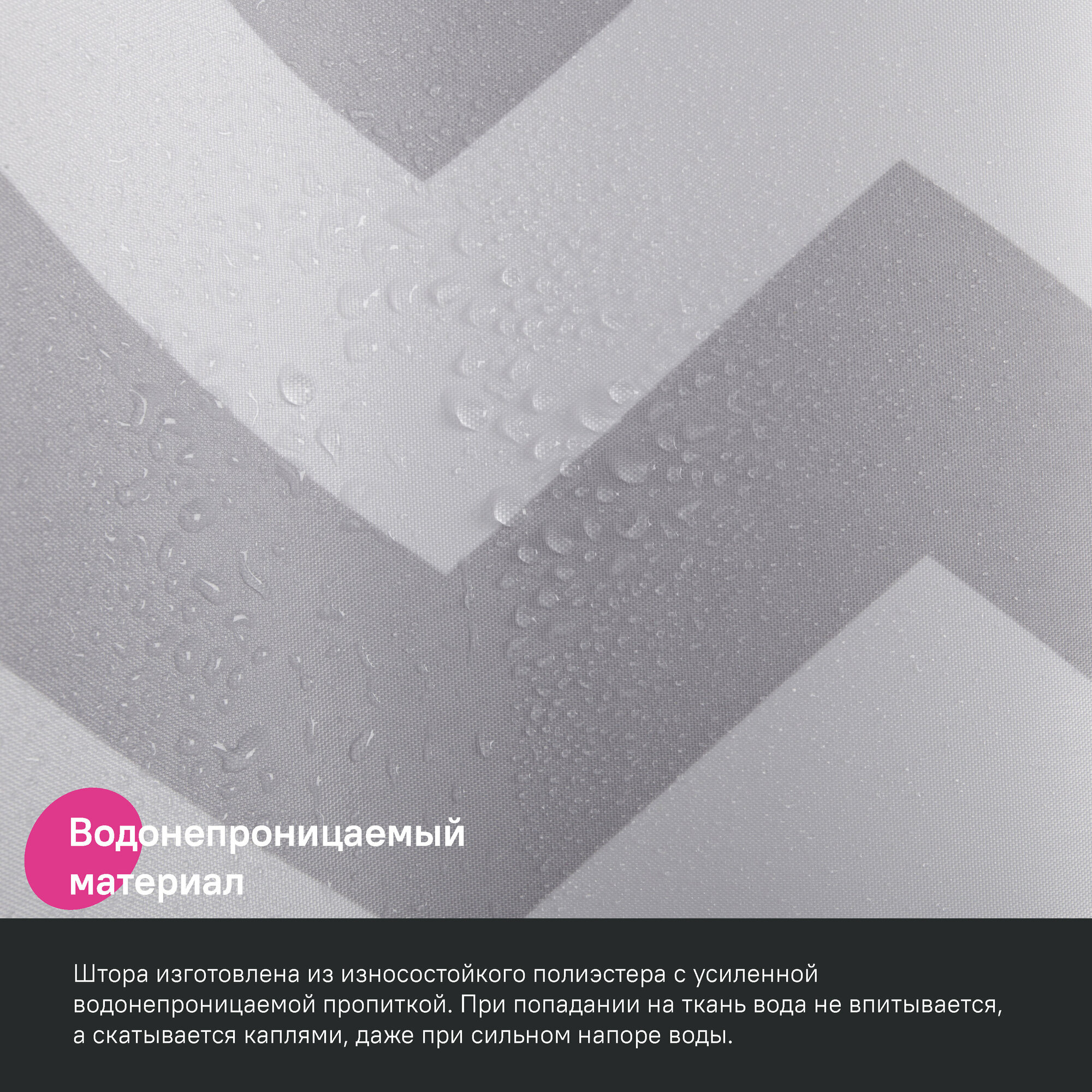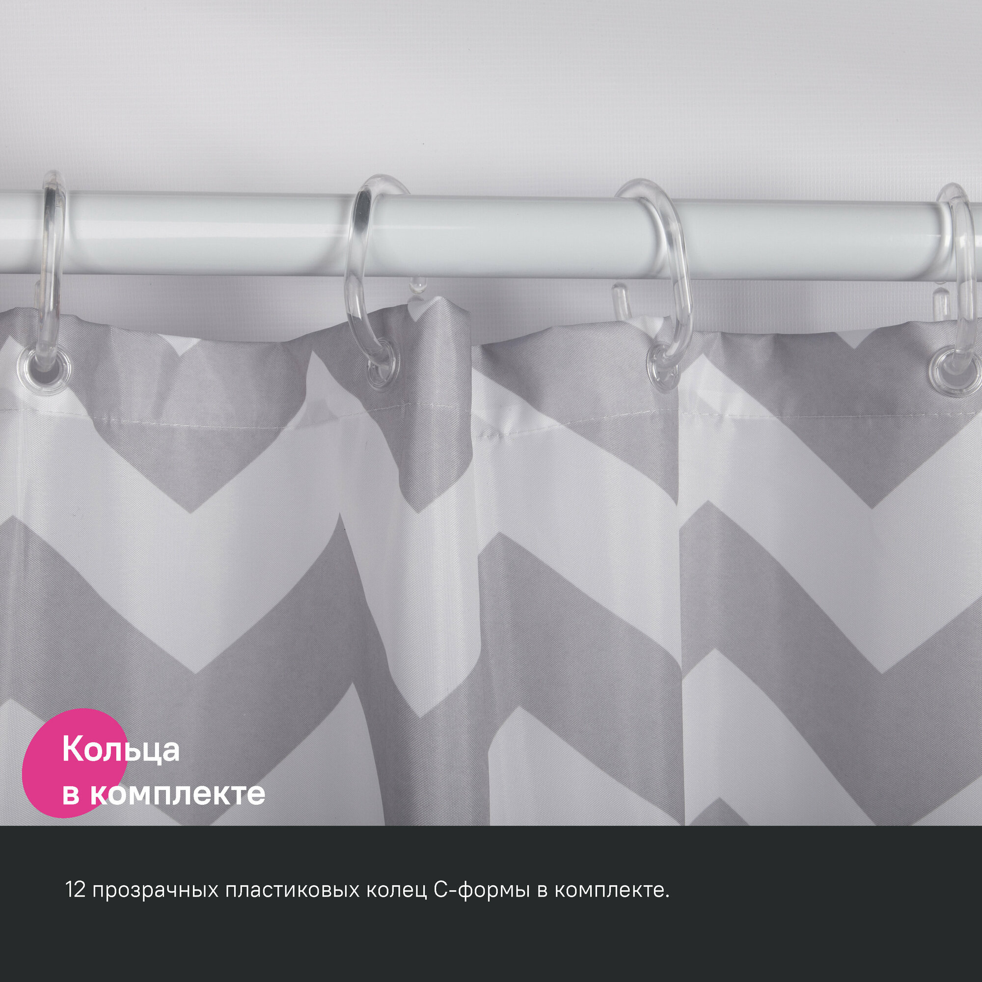Штора для ванной комнаты и душа IDDIS Base BS01P18i11 водоотталкивающая, из полиэстера, серая, с люверсами, с кольцами