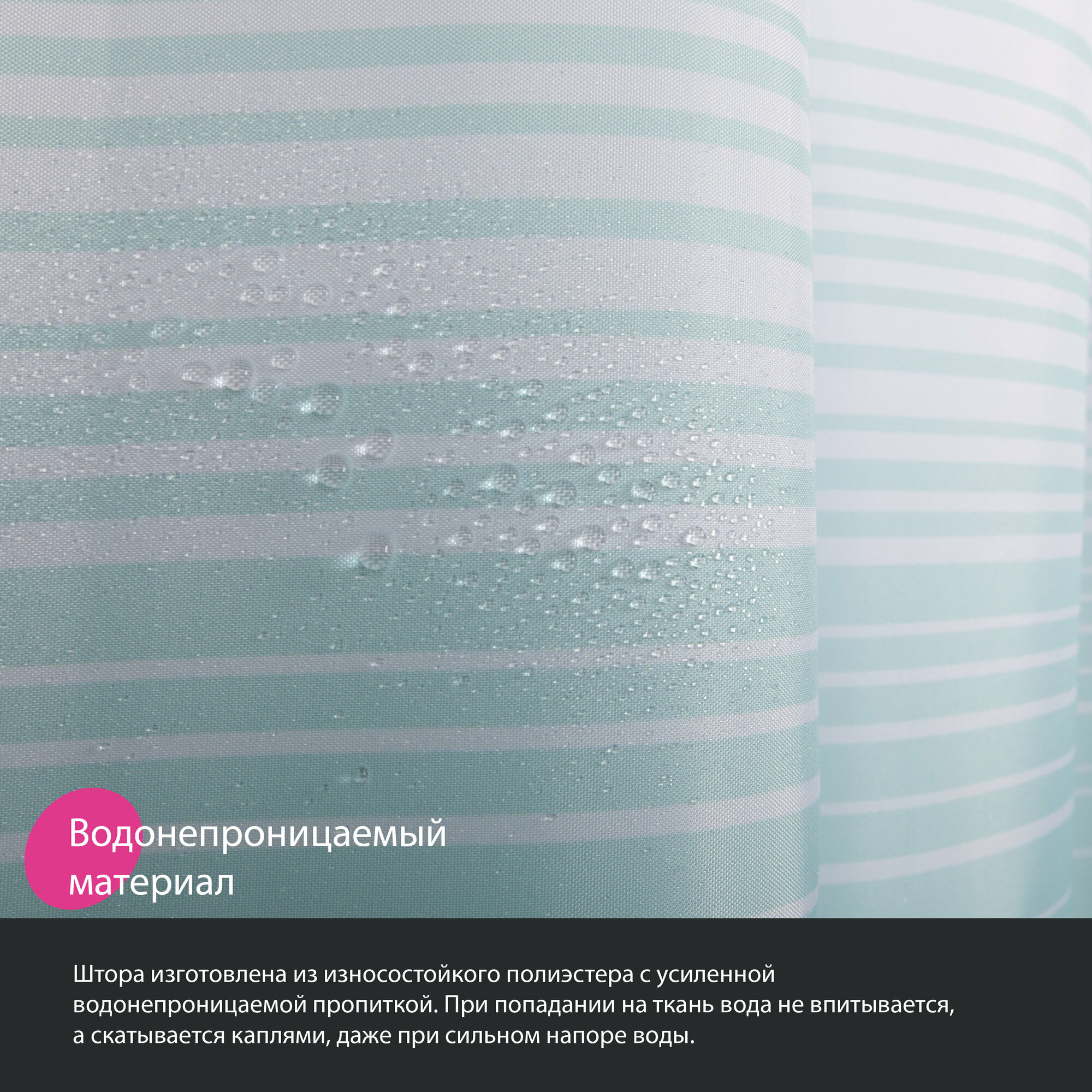 Штора для ванной комнаты и душа IDDIS Base BF01P18i11 180x200 см, тканевая, водонепроницаемая, полиэстер, с кольцами