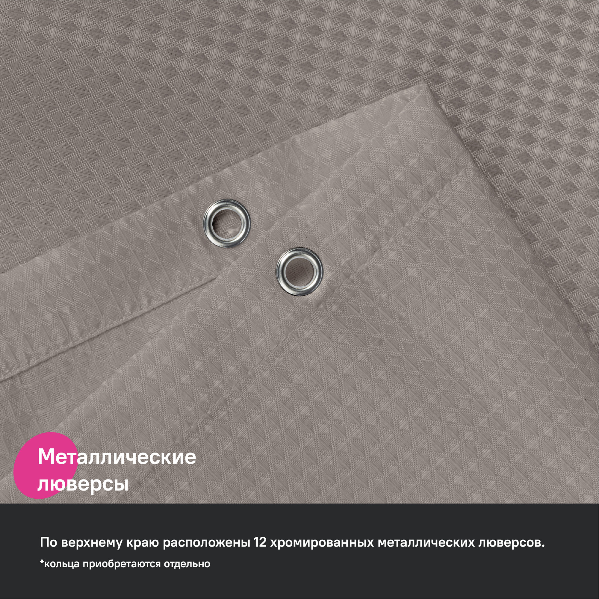 Штора для ванной комнаты и душа IDDIS Base BS01P18i11 водоотталкивающая, из полиэстера, серая, с люверсами, с кольцами