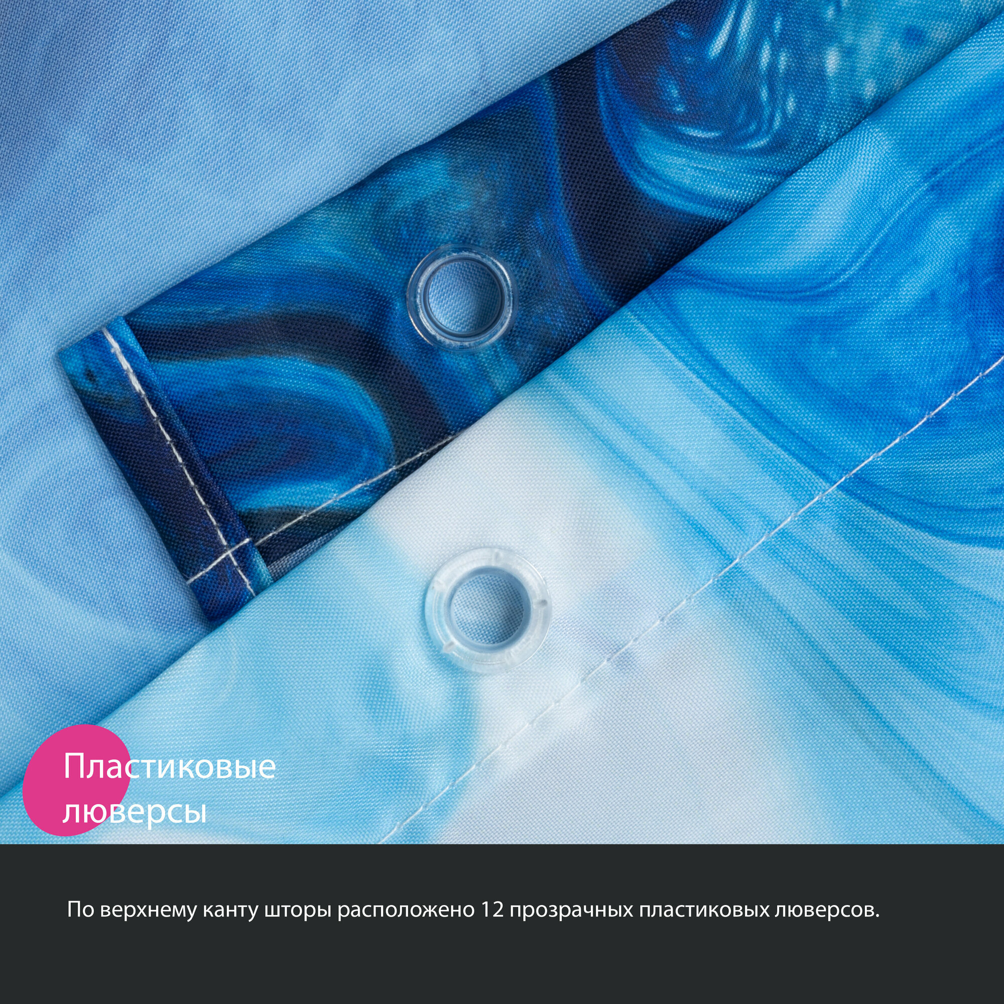 Штора для ванной комнаты и душа IDDIS Base BR01P18i11 180x200 см, тканевая, водонепроницаемая, полиэстер, с кольцами, голубая