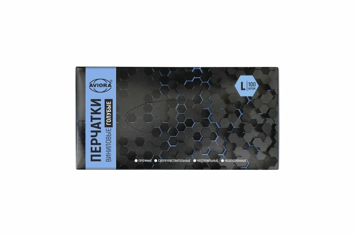 Купить Перчатки виниловые, голубые, неопудренные, одноразовые, размер L, 100 шт. в упаковке, AVIORA (402-917)