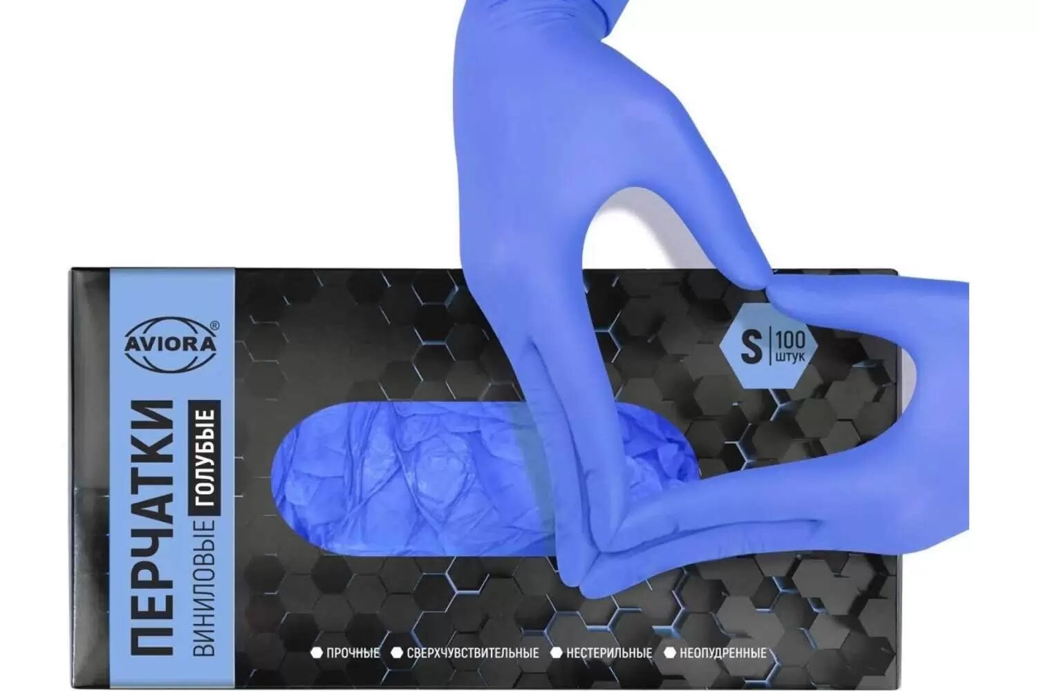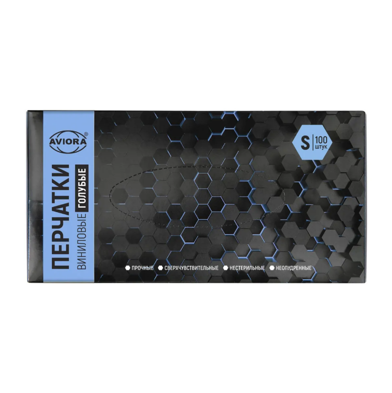 Виниловые неопудренные перчатки AVIORA голубые, размер S, 100 шт. 402-915
