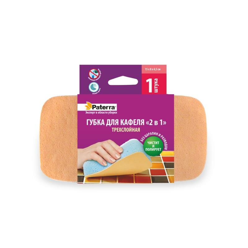 PATERRA Губка для кафеля 2 в 1 трехслойная 1 шт 406-008