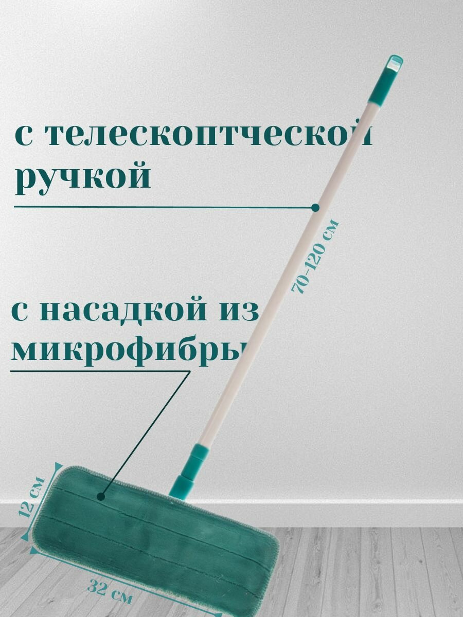Купить Швабра с плоской насадкой из микрофибры 12х32см, бирюзовая