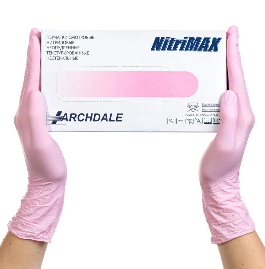 Archdale, перчатки для маникюриста неопуд. нитриловые Nitrimax (761 розовые, S), 50 пар