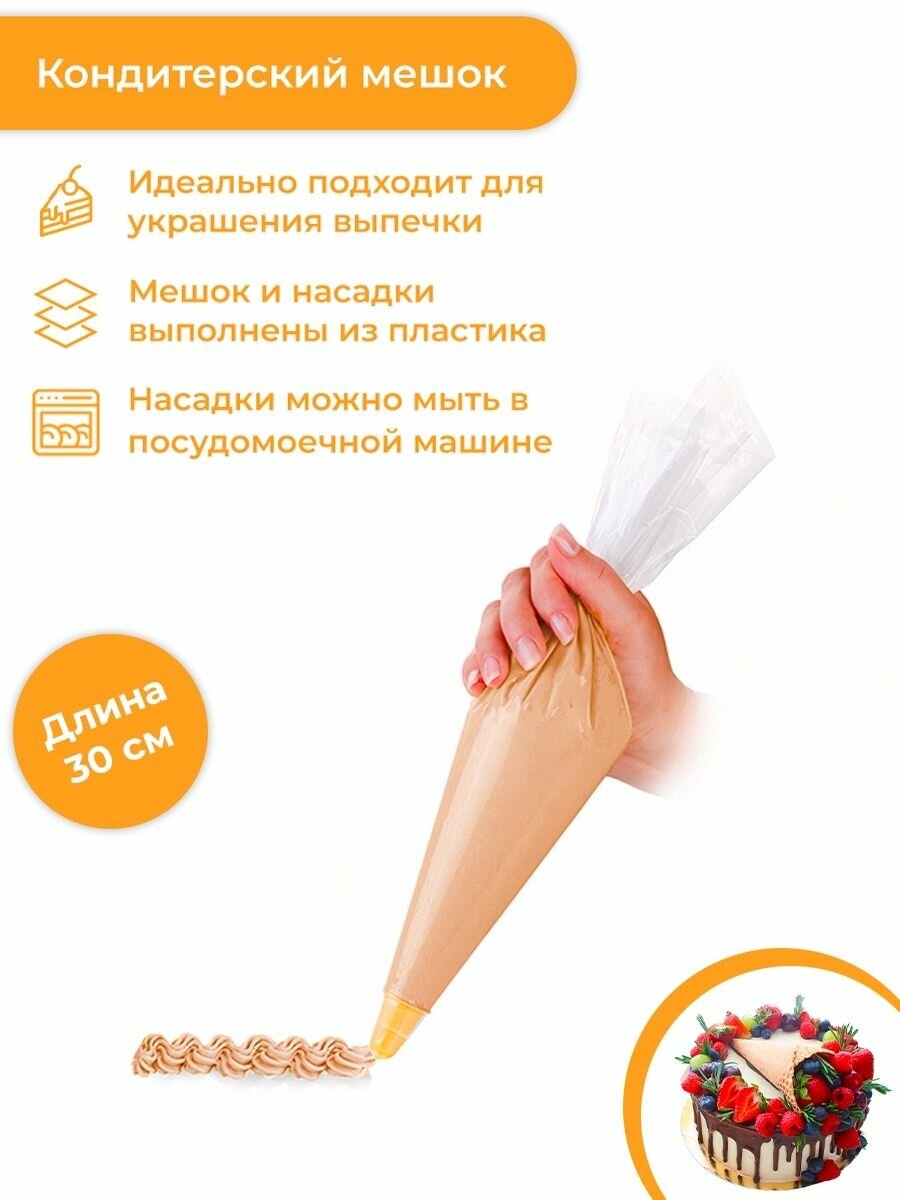 Доляна Мешок кондитерский, 24 предмета: мешок, адаптер, насадки 22 шт